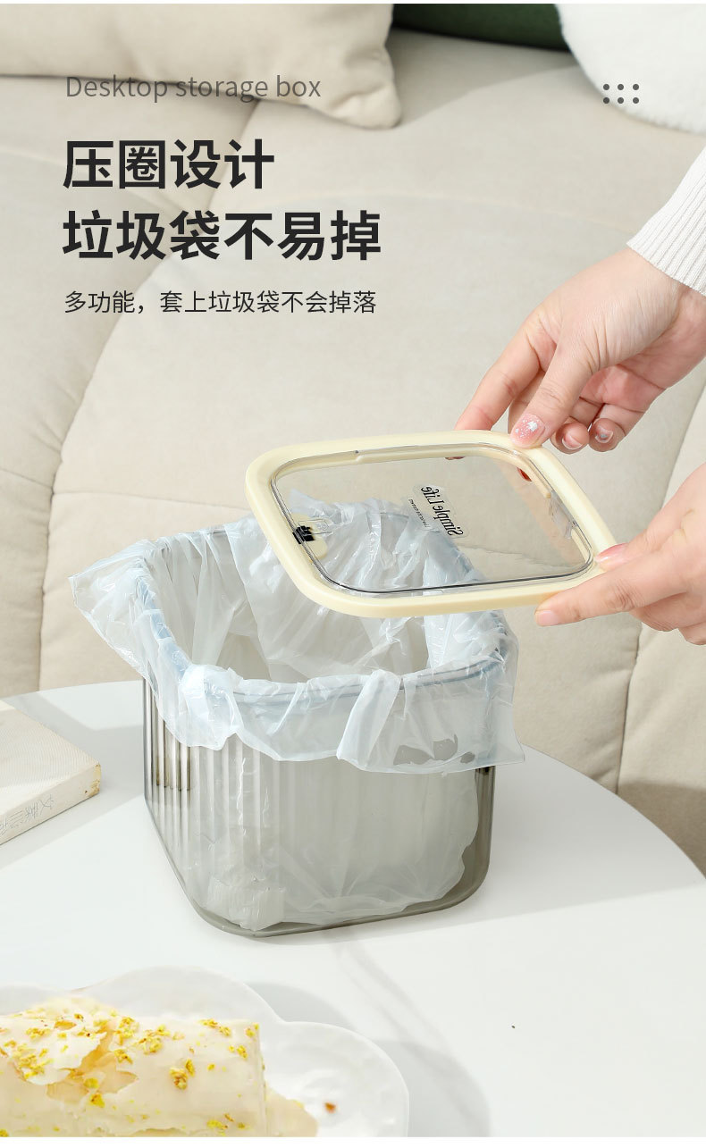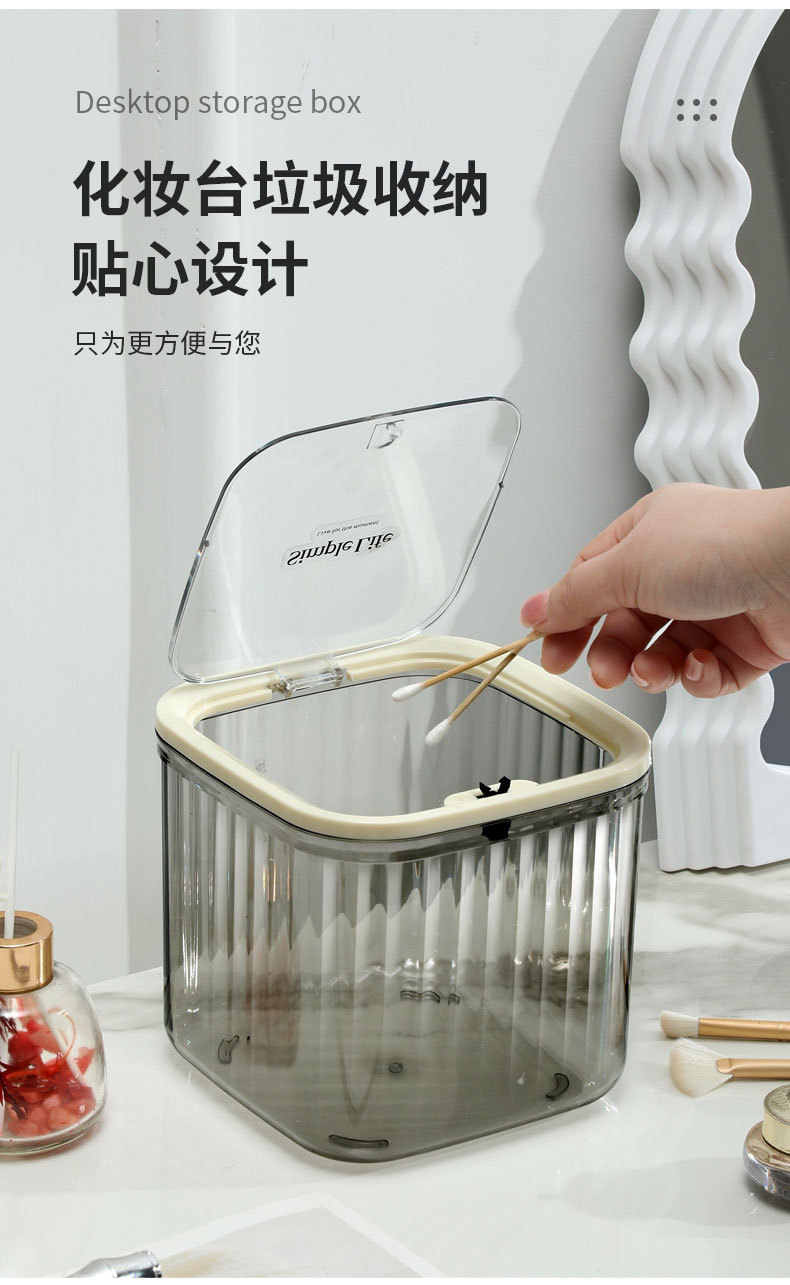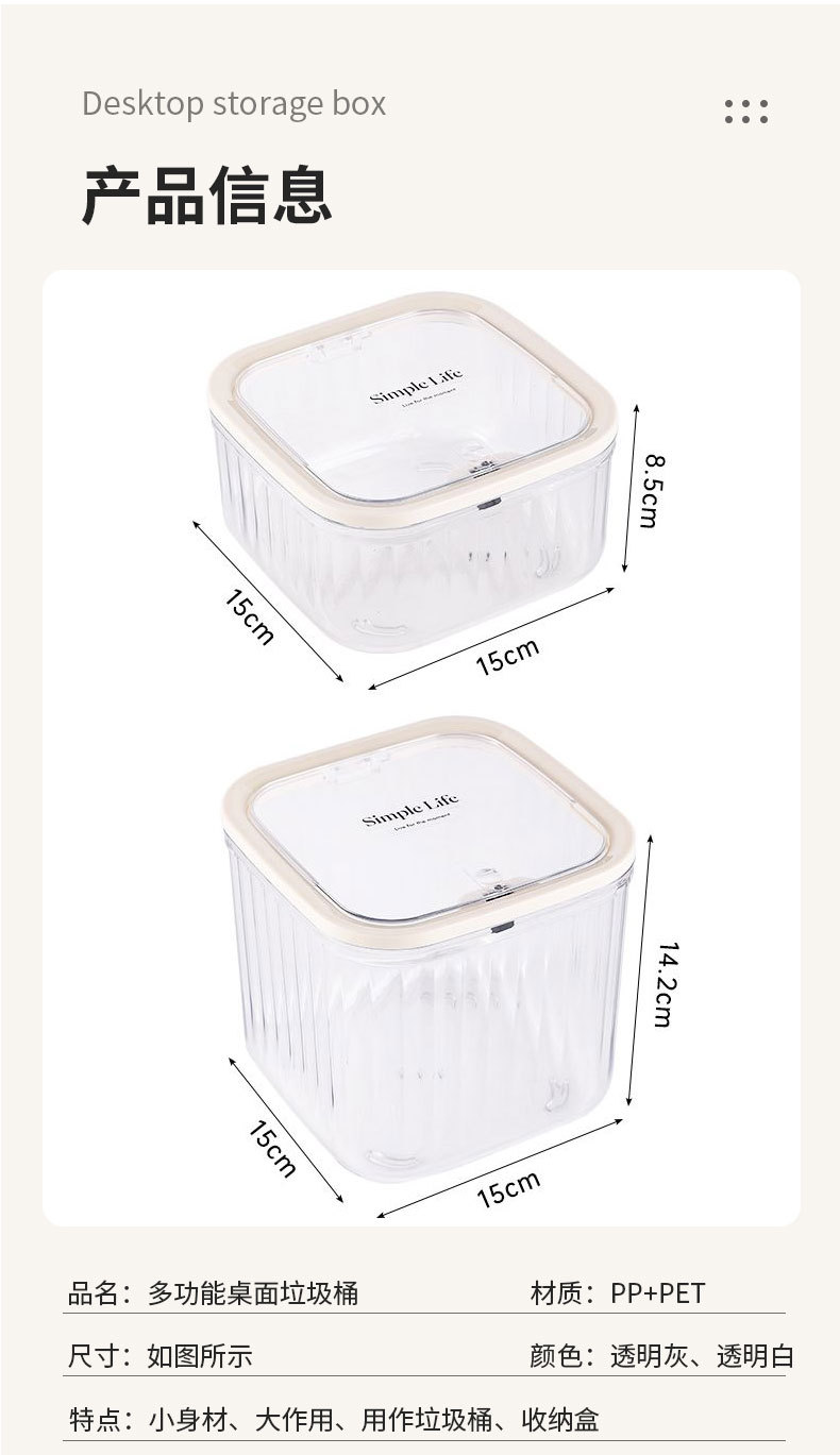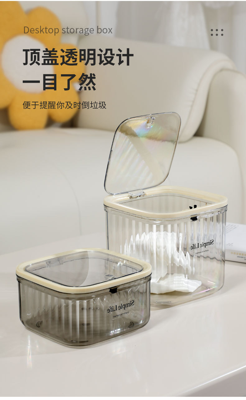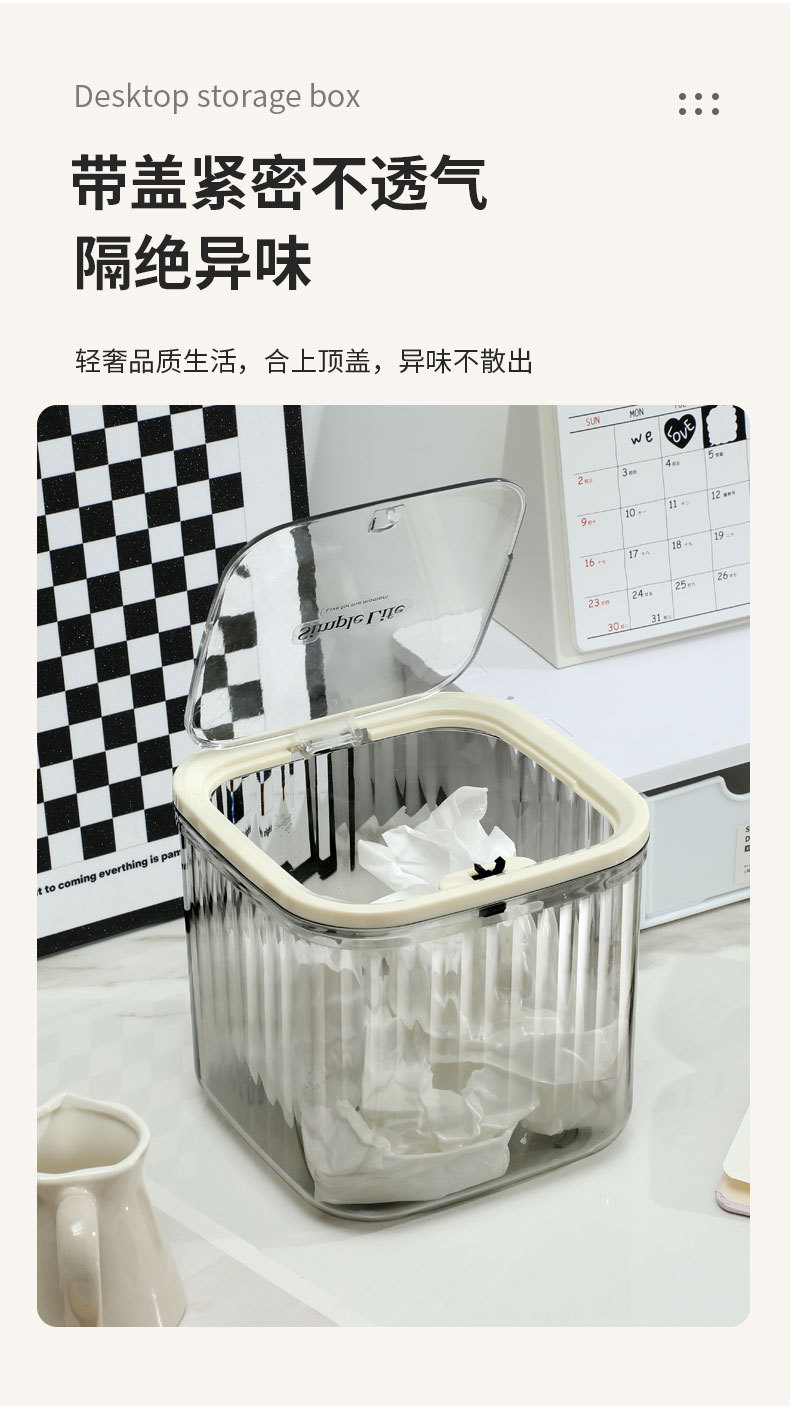 桌面弹盖收纳桶 桌面垃圾桶塑料透明垃圾桶 家用收纳盒 ins风高颜值创意按压带弹盖