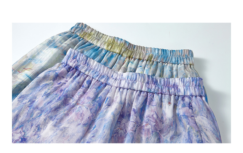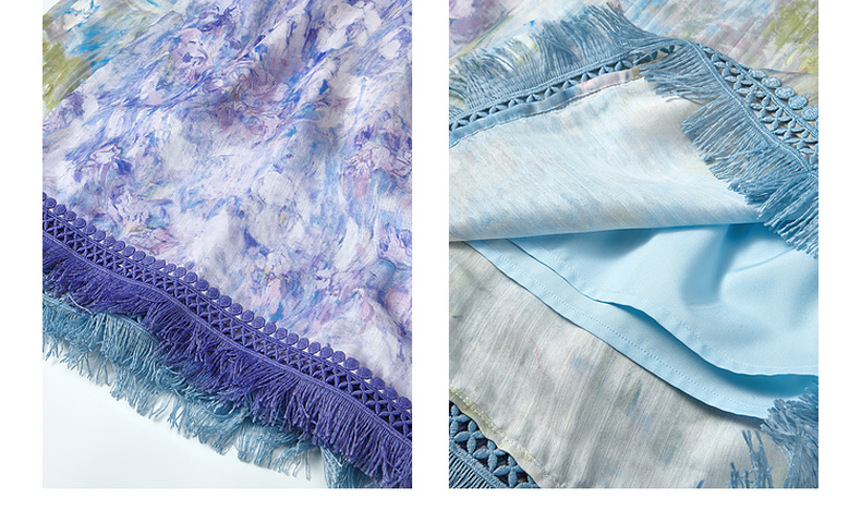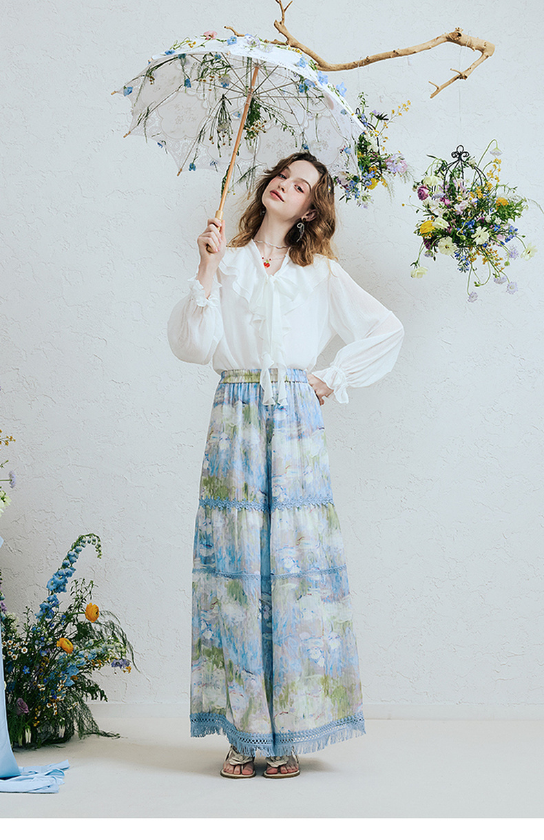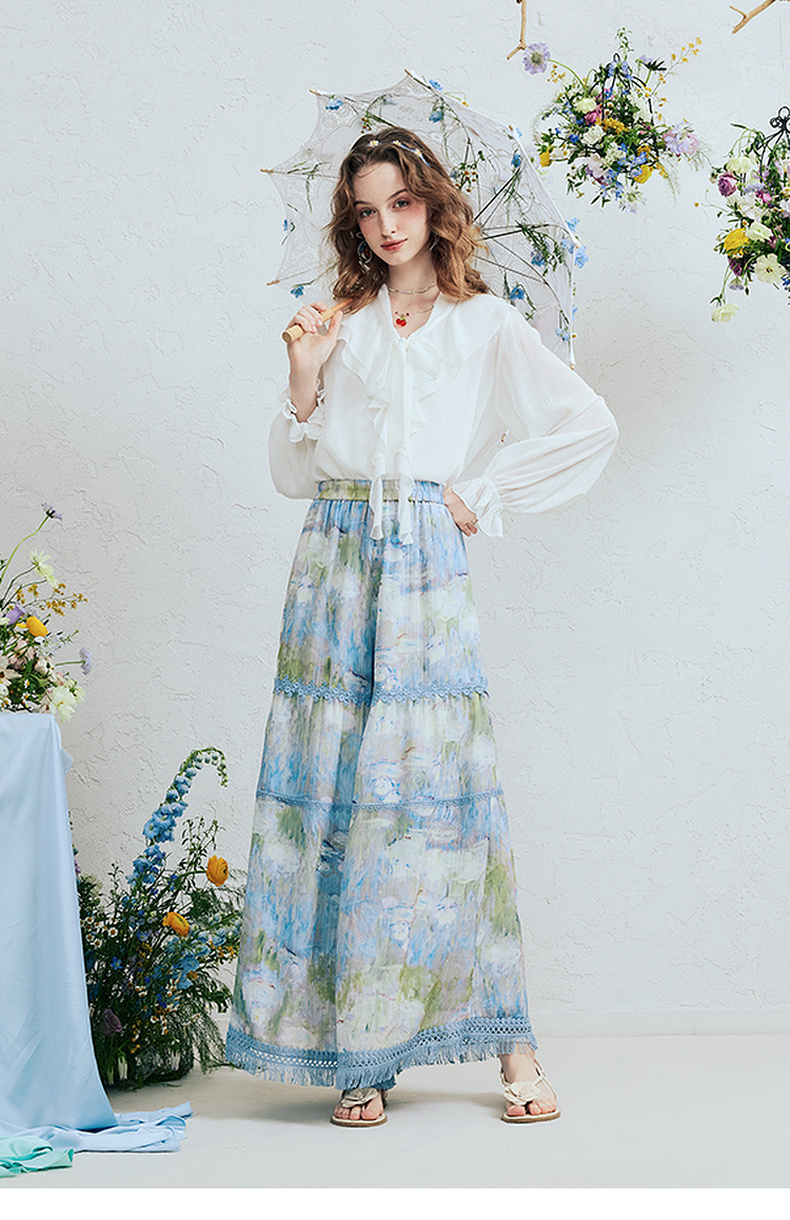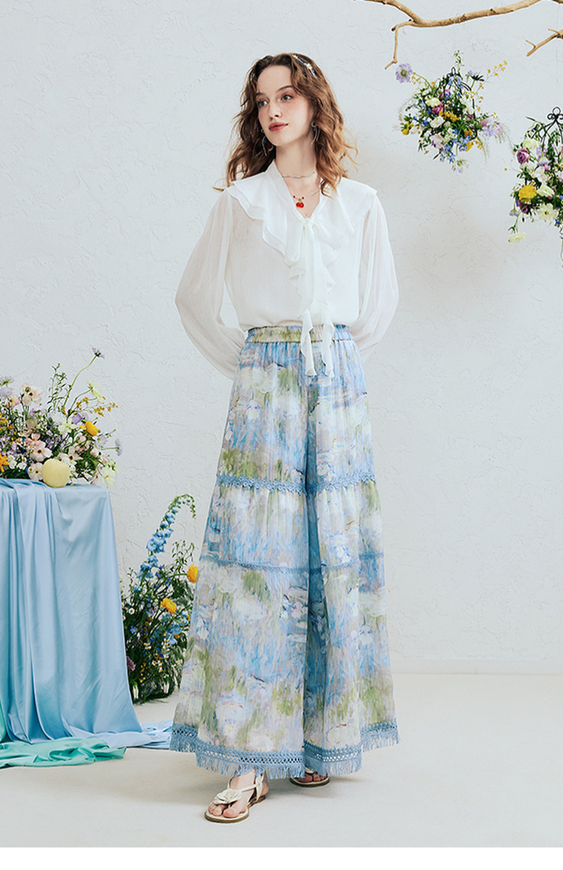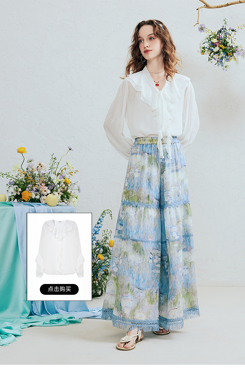 两三事 雾眠洄游 2025夏季新款小清新流苏裤脚口印花阔腿休闲裤女
