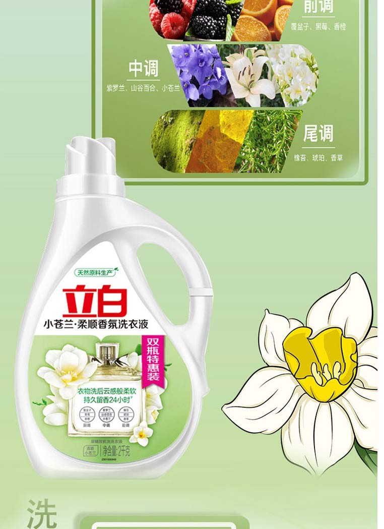 立白小苍兰柔顺香氛洗衣液2kg*2