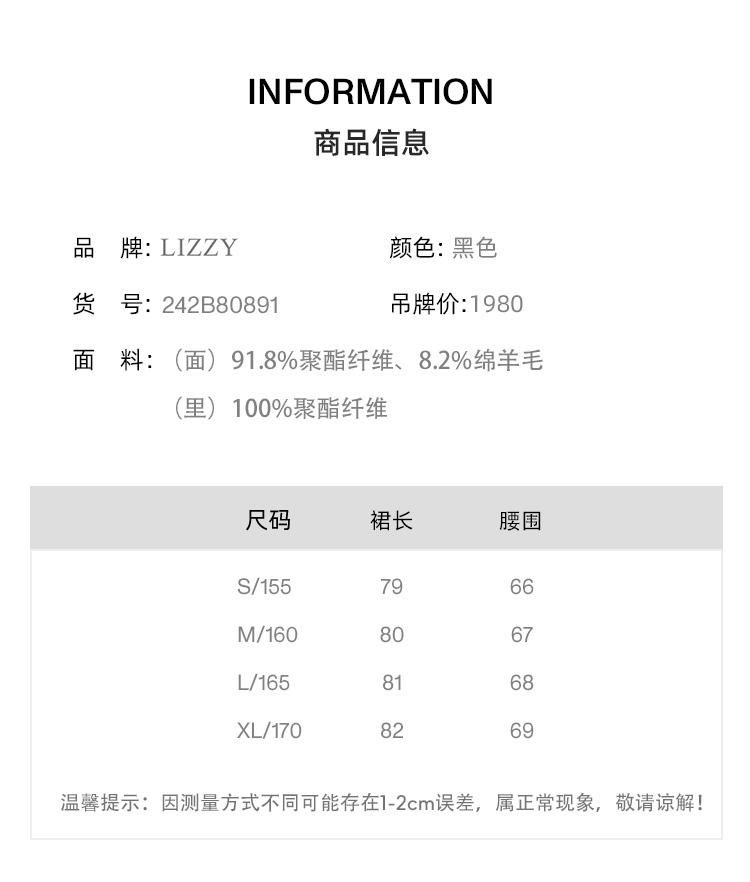 LIZZY早秋新款法式优雅休闲通勤高腰百搭大摆半身裙8089