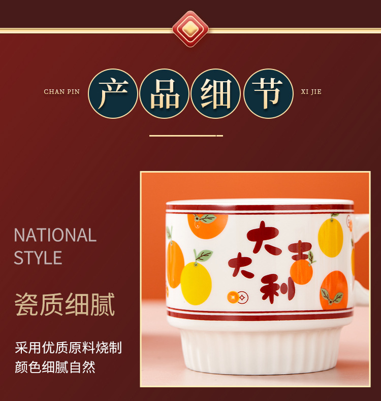 【大吉大利!陶瓷水杯马克杯叠叠杯】瓷质细腻颜色亮丽,釉面光滑创意设计,多用途,实用性强套装创意咖啡杯子实用礼品伴手礼礼盒装