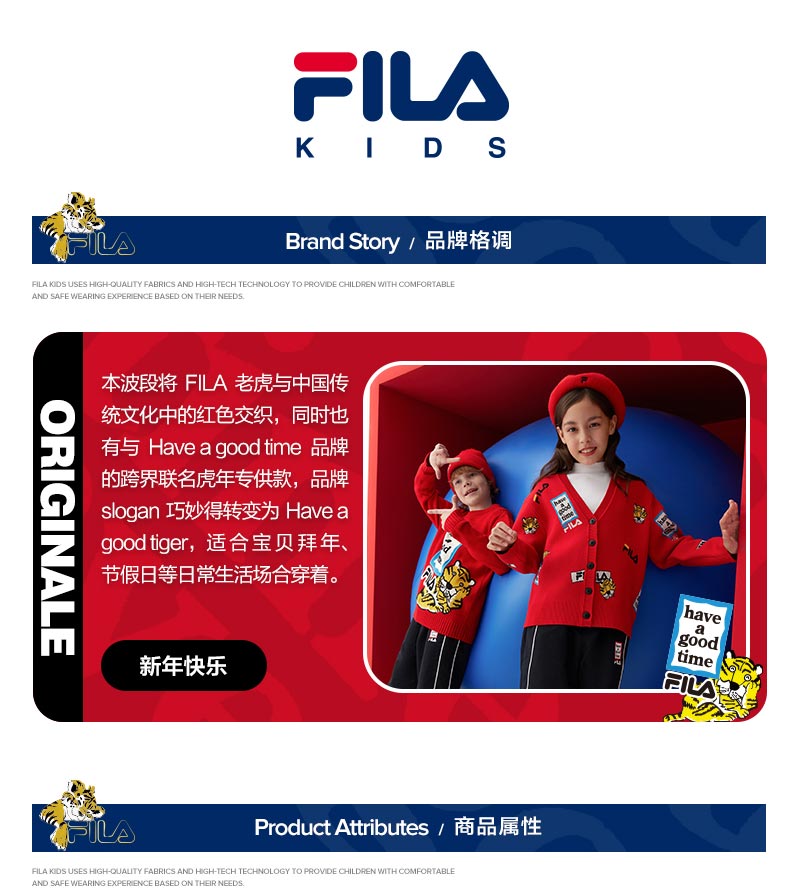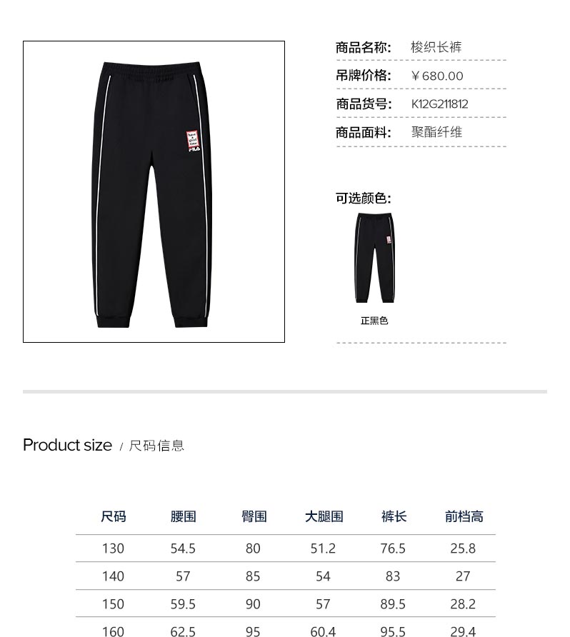 小斐乐虎年新款x have a good time斐乐男女童长裤2022春季K12G211812F