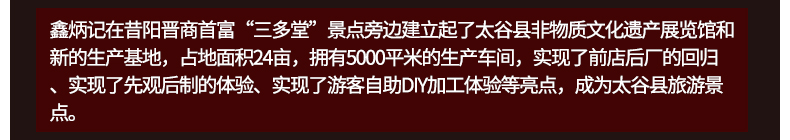 - 鑫炳记始于1859年,历经五代传承,传承百年工艺,从选取原料到烘烤出炉,都严格遵守祖传古方,让百年太谷饼焕发新的魅力。
