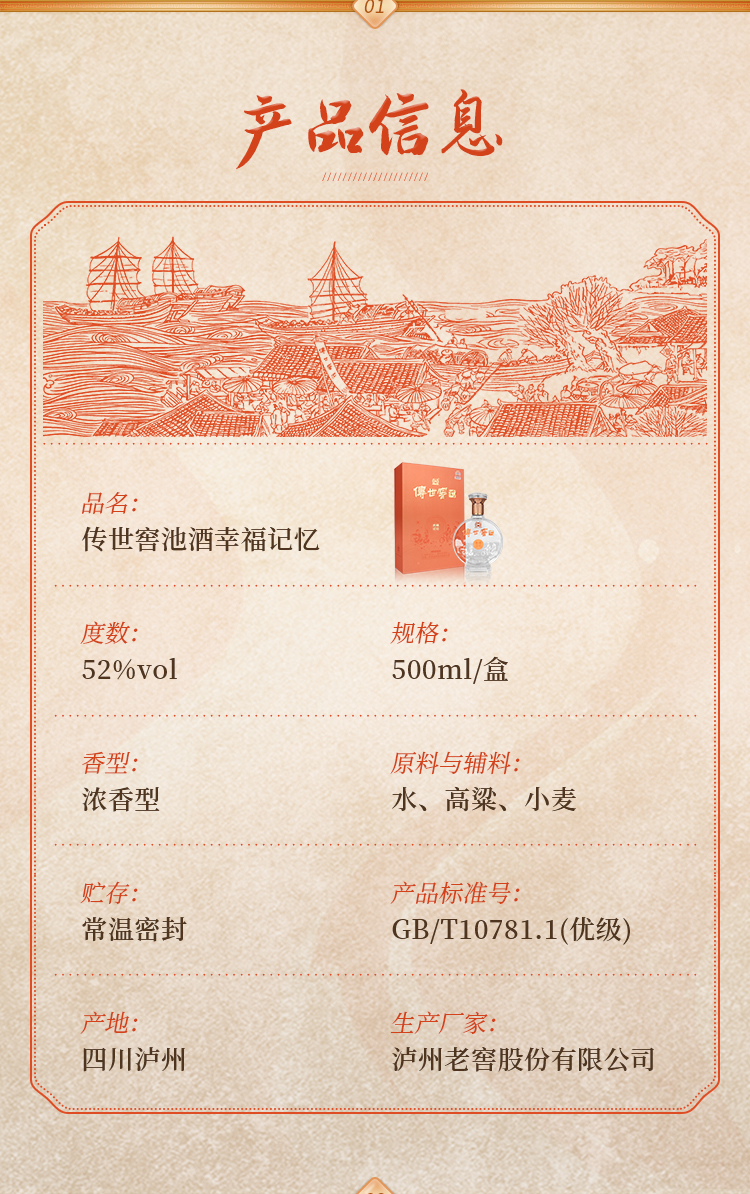 【酒厂直营】52度传世窖池酒幸福记忆500ml*4 泸州老窖官方旗舰店