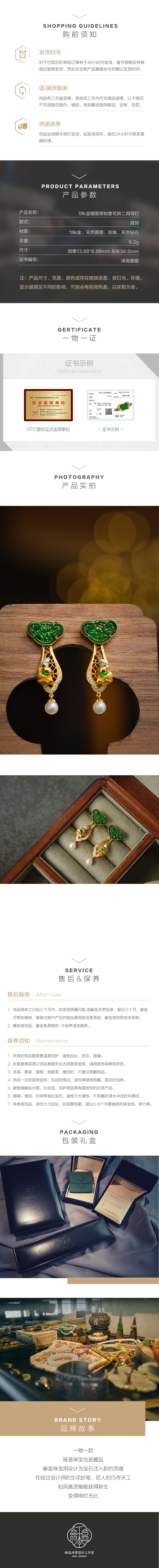 龢盒原创 18k金镶翡翠如意可拆二用耳钉