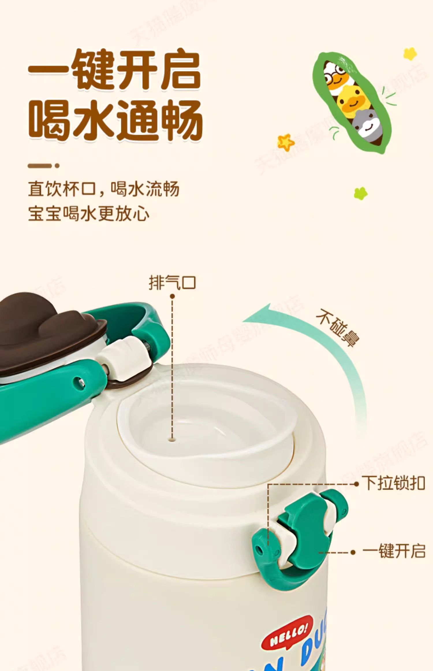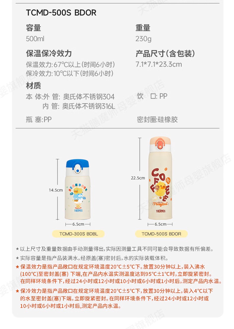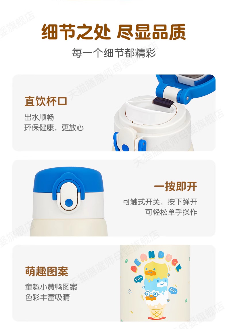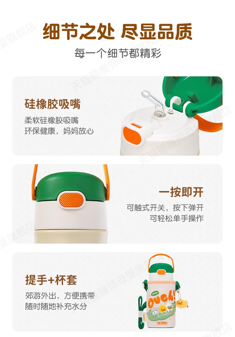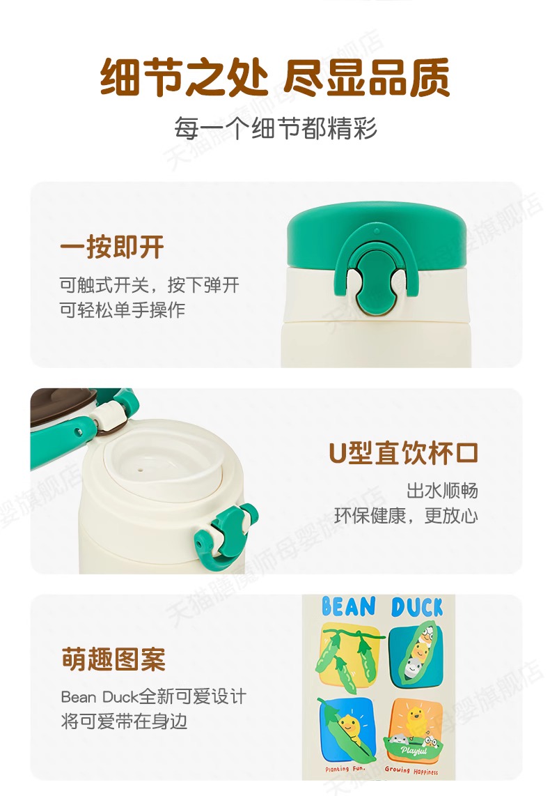 膳魔师小黄鸭联名不锈钢保温杯保冷吸管杯Bean Duck系列350ml 水杯直饮杯
