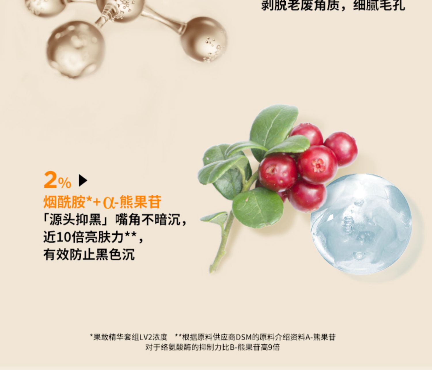 高浓度黄盒LV2:含有2%烟酰胺+2%立体水杨酸+5%发酵乳糖酸+0.5%欧著草提取物