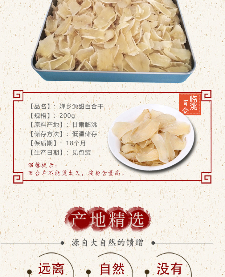 精品百合干(盒装,有机转换期)	200g/盒 商品缩略图0
