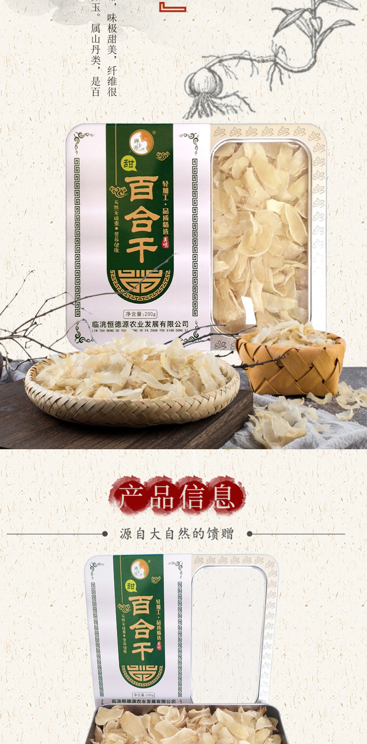 精品百合干(盒装,有机转换期)	200g/盒 商品图0