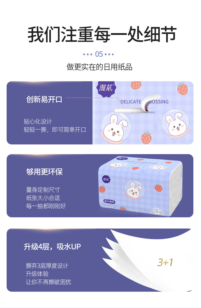 【漫花纸巾30包整箱抽纸】原木4层加厚,抽取式家用卫生纸,细腻柔韧,吸水速度快,让你的生活更加舒适和便捷!