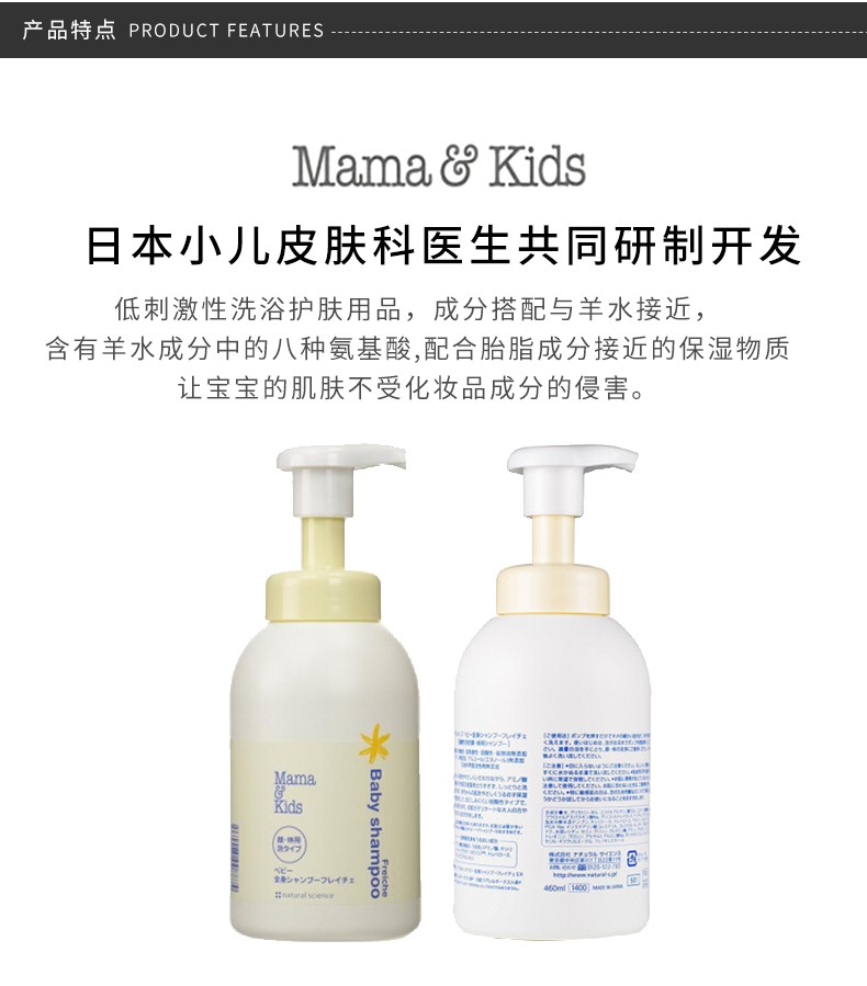 特殊按压口,挤出来的泡沫浓郁,非常好冲洗,洗完宝宝全身嫩嫩的软软的~