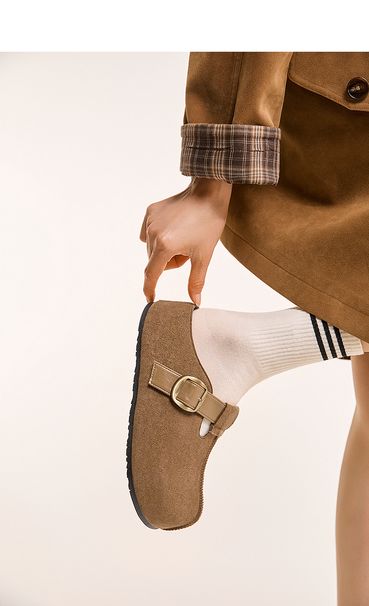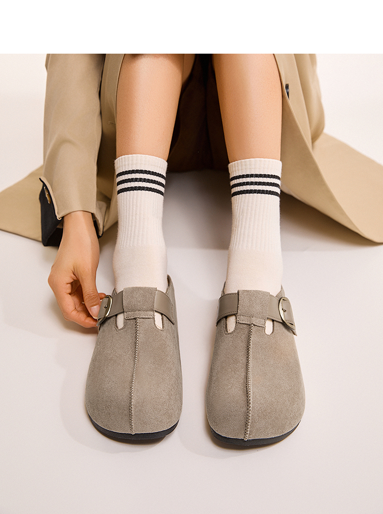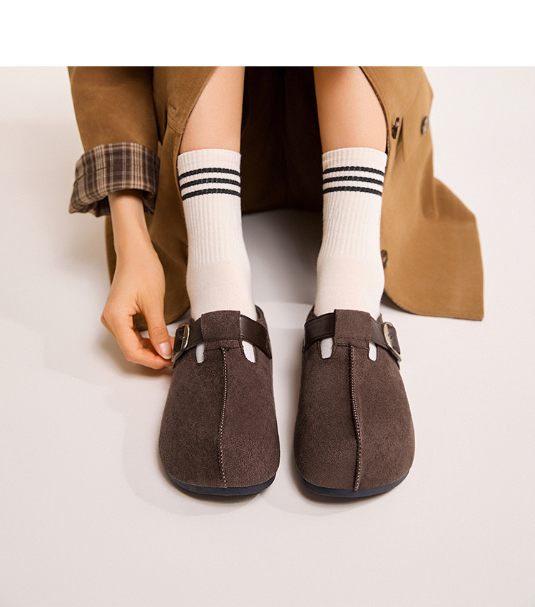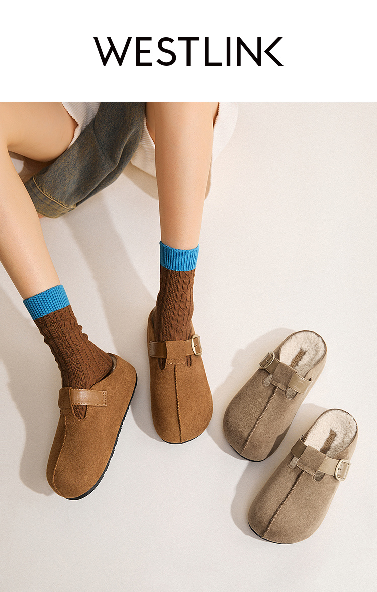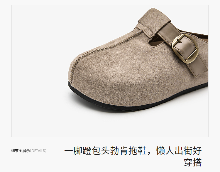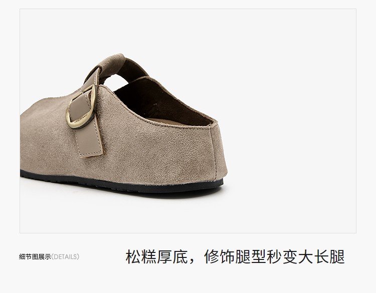 西遇一脚蹬勃肯鞋半拖女新款秋季懒人包头拖鞋增高厚底吐司鞋K0057160(单里)/K0057211(绒里)
