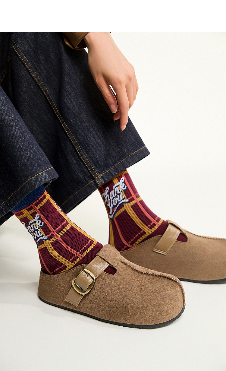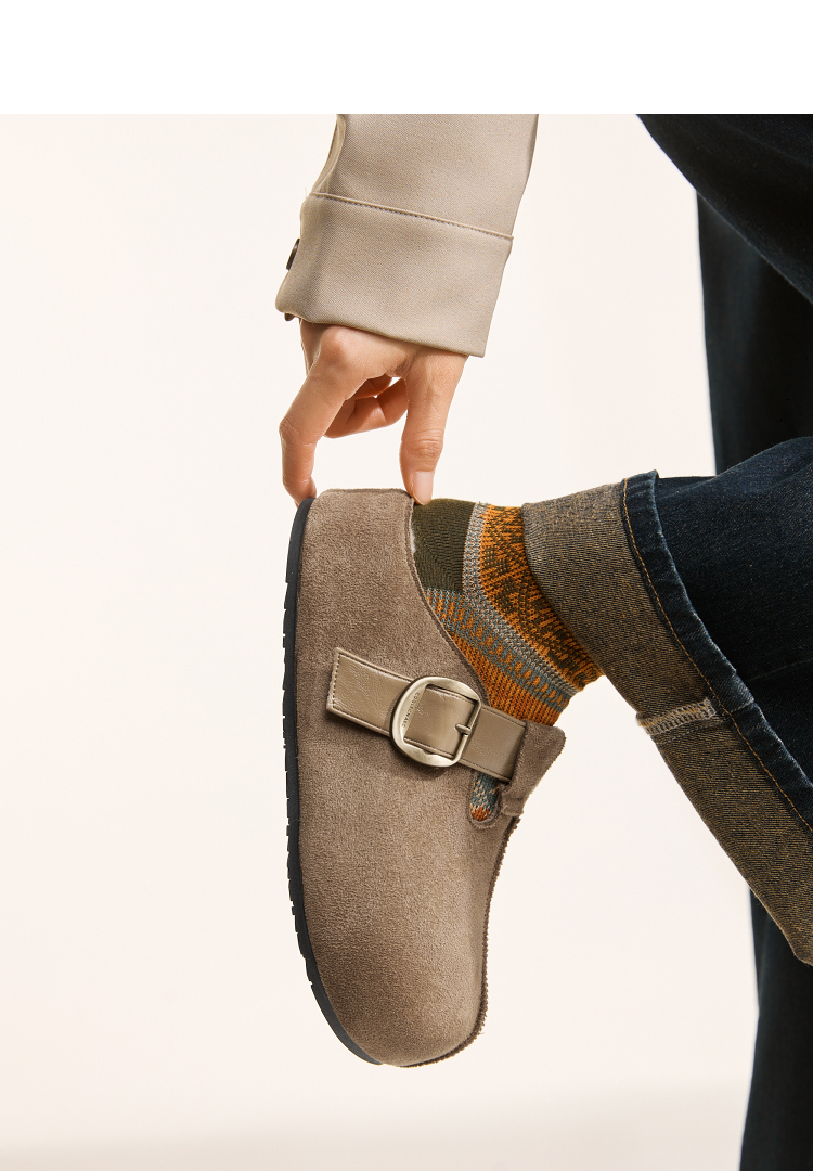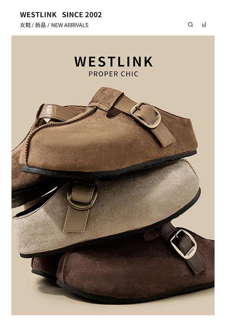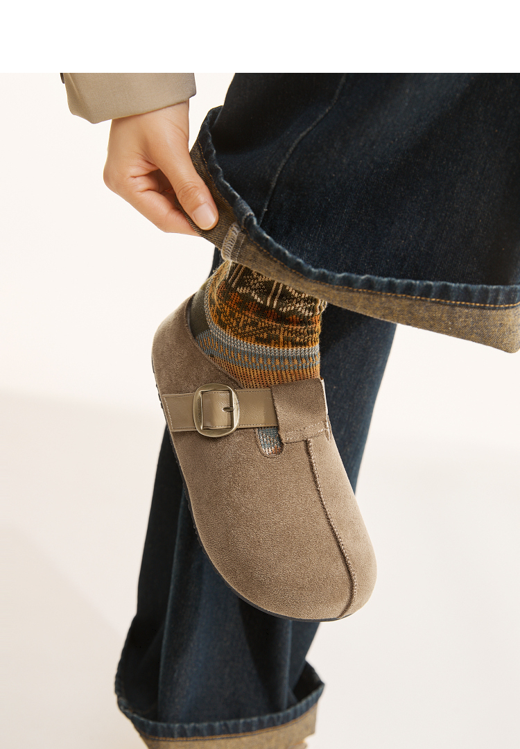 西遇一脚蹬勃肯鞋半拖女新款秋季懒人包头拖鞋增高厚底吐司鞋K0057160(单里)/K0057211(绒里)