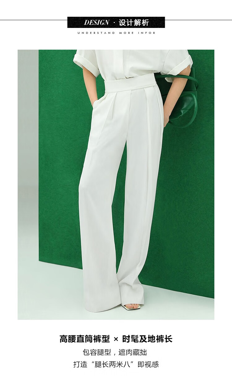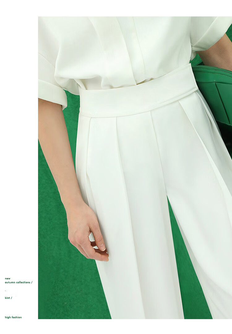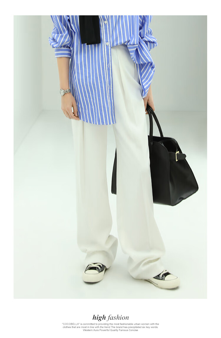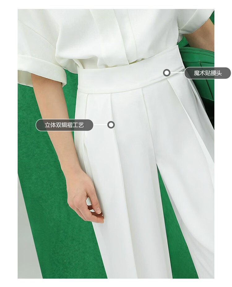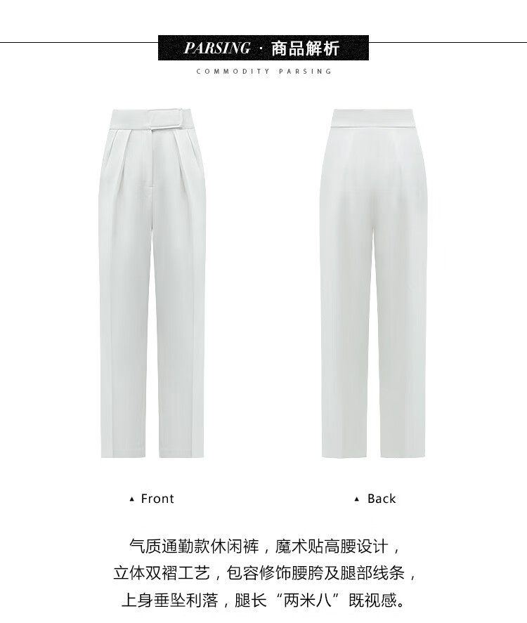 【限时秒杀】COCOBELLA魔术贴高腰打褶西装裤女气质通勤白色休闲裤PA153
