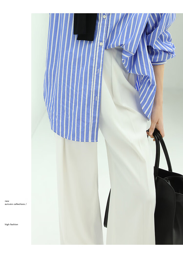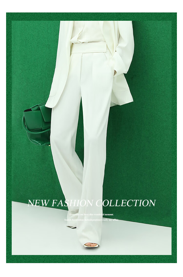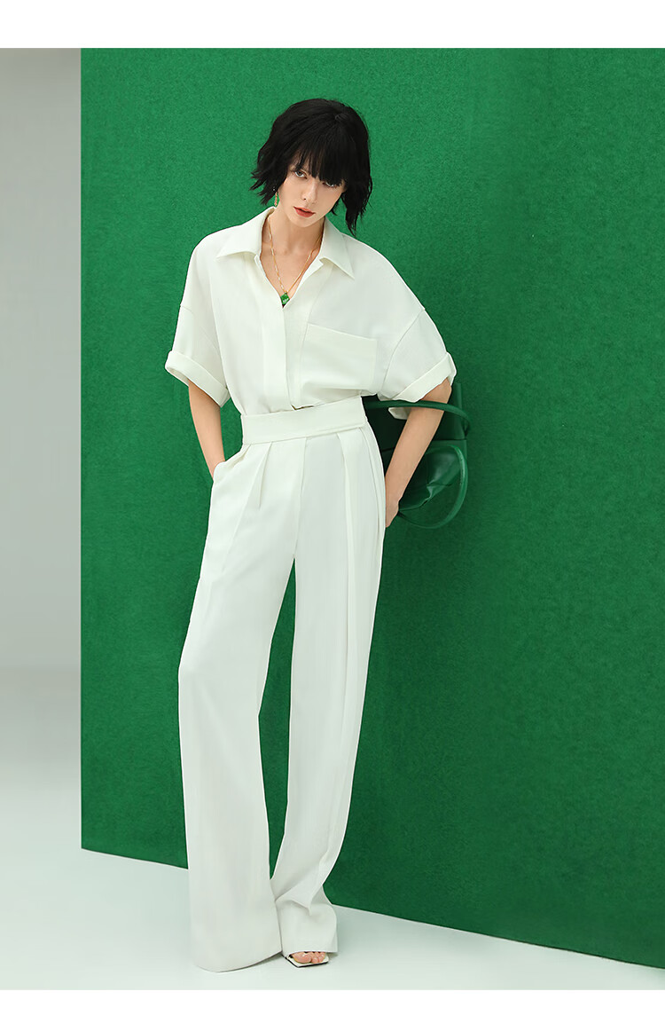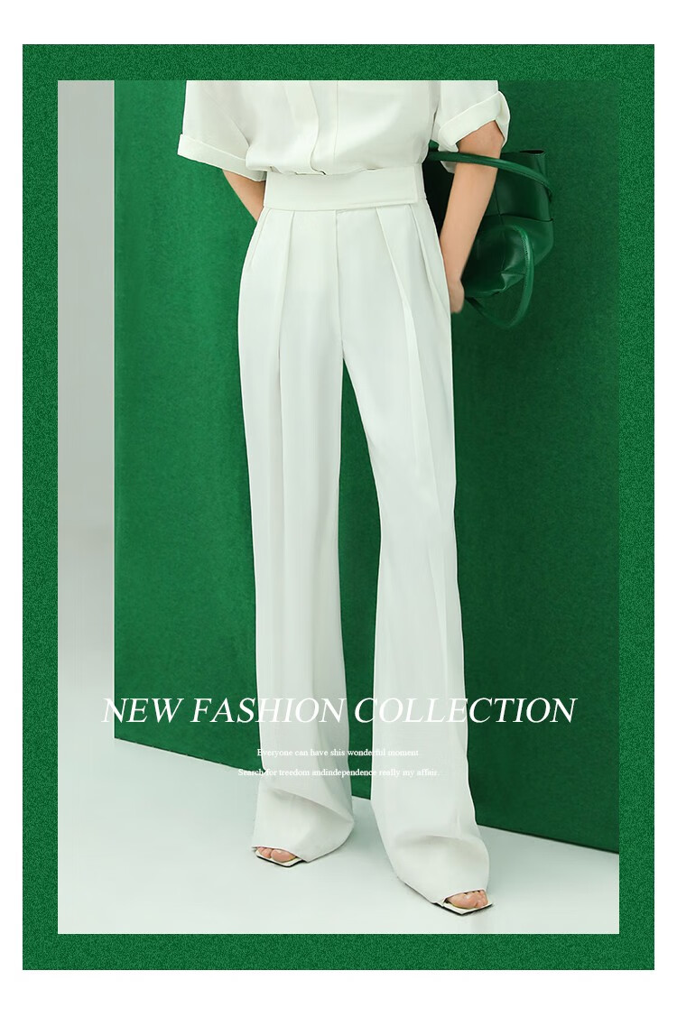 【限时秒杀】COCOBELLA魔术贴高腰打褶西装裤女气质通勤白色休闲裤PA153
