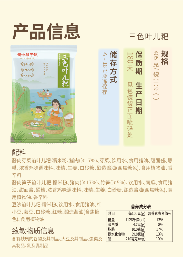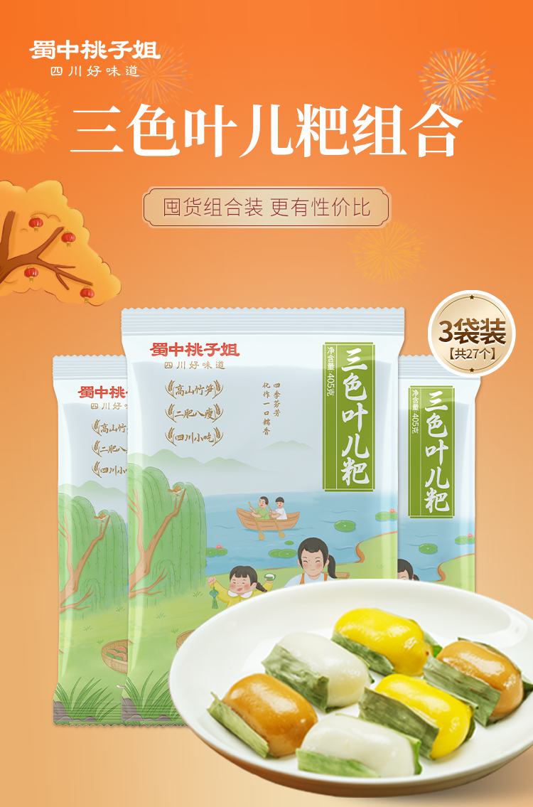 【自营】四川名小吃,三色叶儿粑405g*3袋