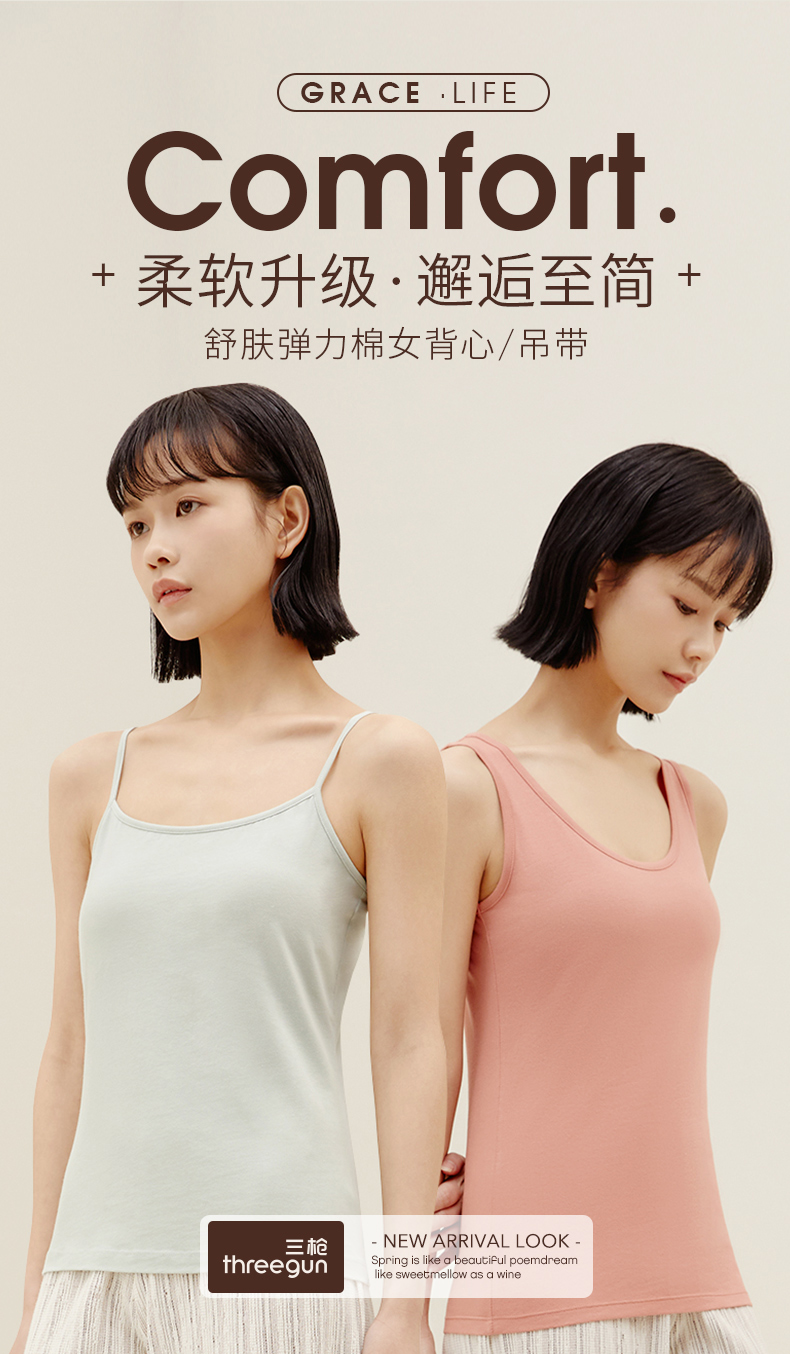 Threegun三枪 【舒肤弹力棉】女士打底背心-30820A011