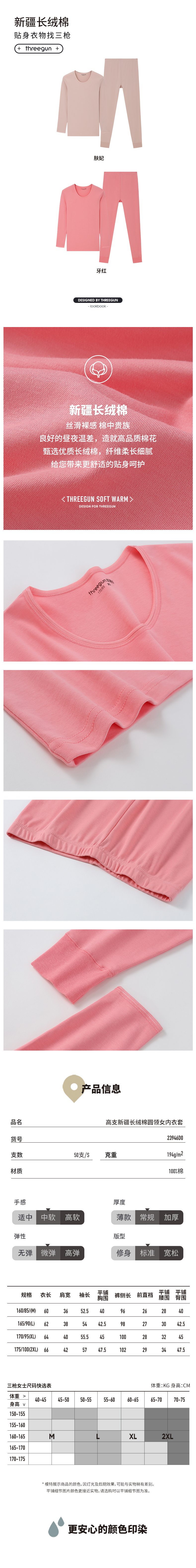 Threegun三枪 【舒肤新疆长绒棉】圆领女士保暖内衣套装-23946D021
