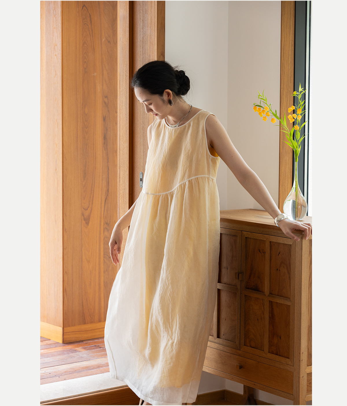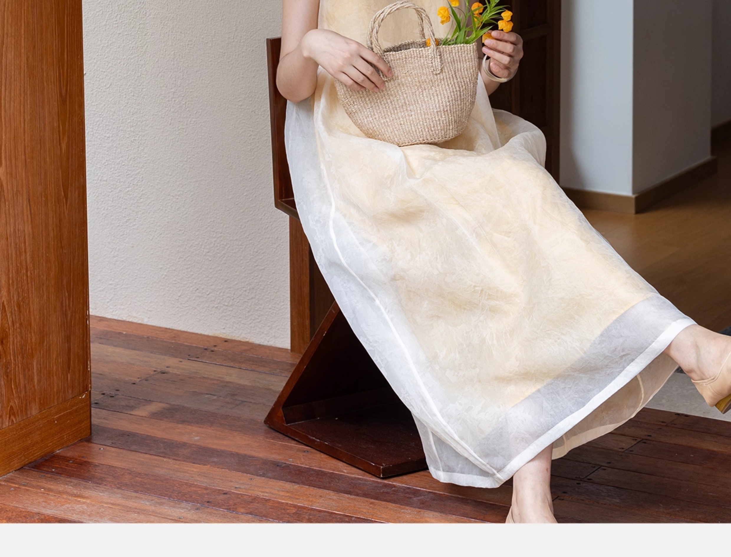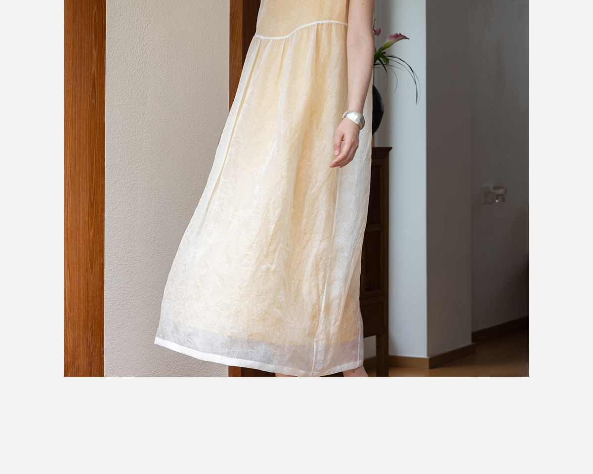 牧衣游原创 11姆米欧根纱真丝连衣裙蓬松气质无袖长裙 月影流纱