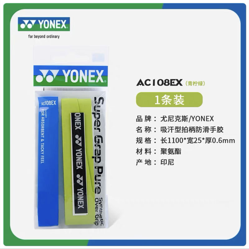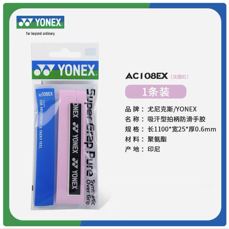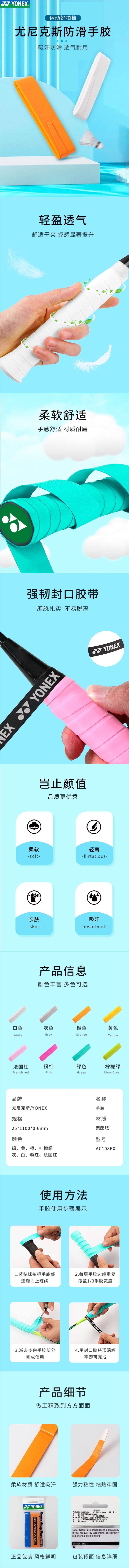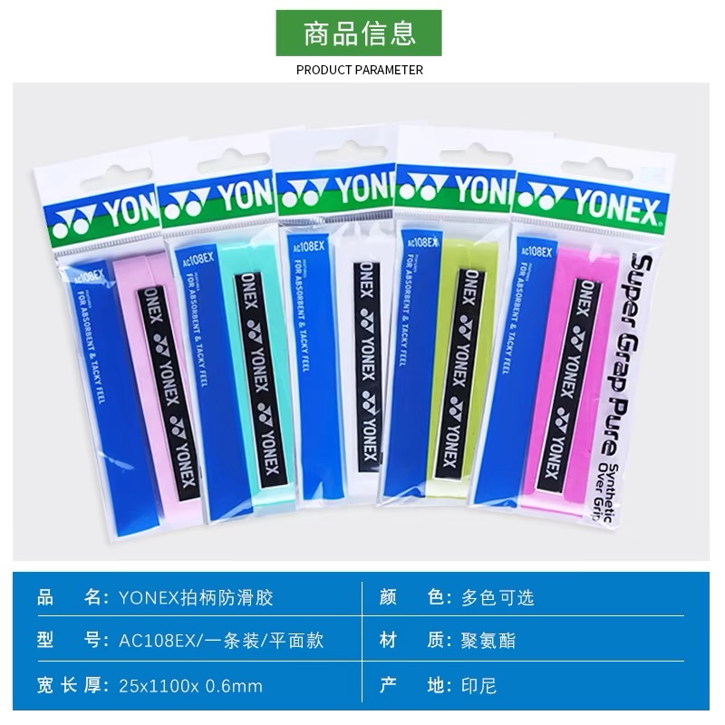 YY手胶 YONEX尤尼克斯羽毛球拍手胶 AC108EX手柄缠带 防滑吸汗带 1条