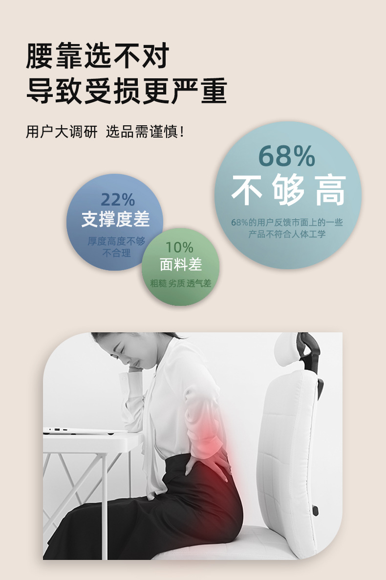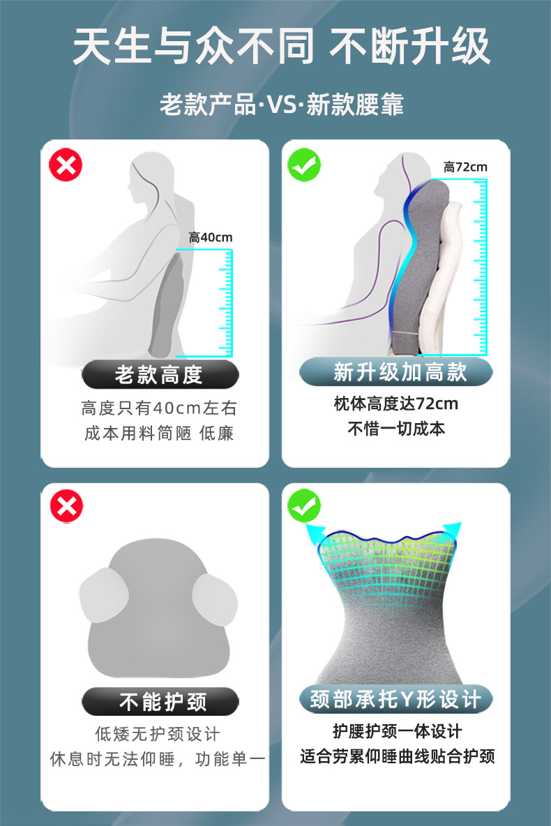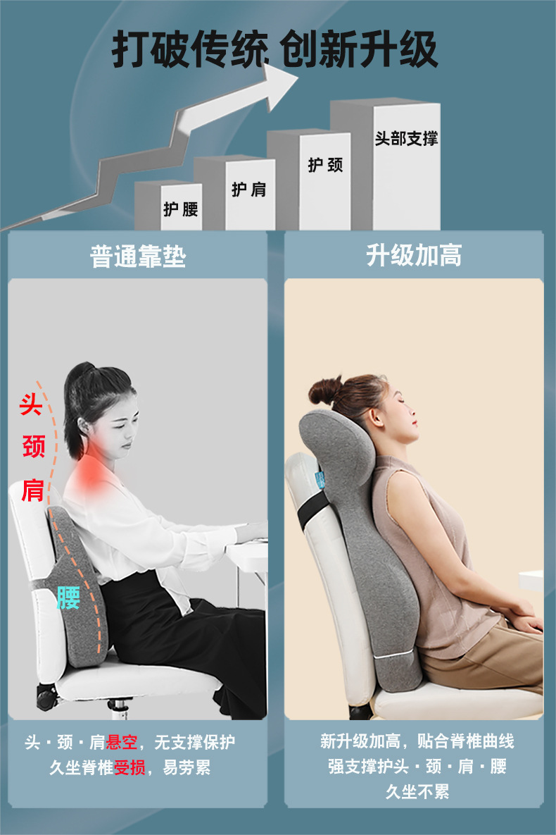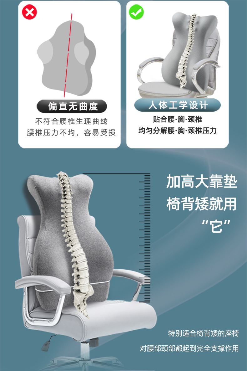 加高护腰靠垫仰睡护颈座椅靠背垫椅子腰垫久坐靠枕办公室午睡神器