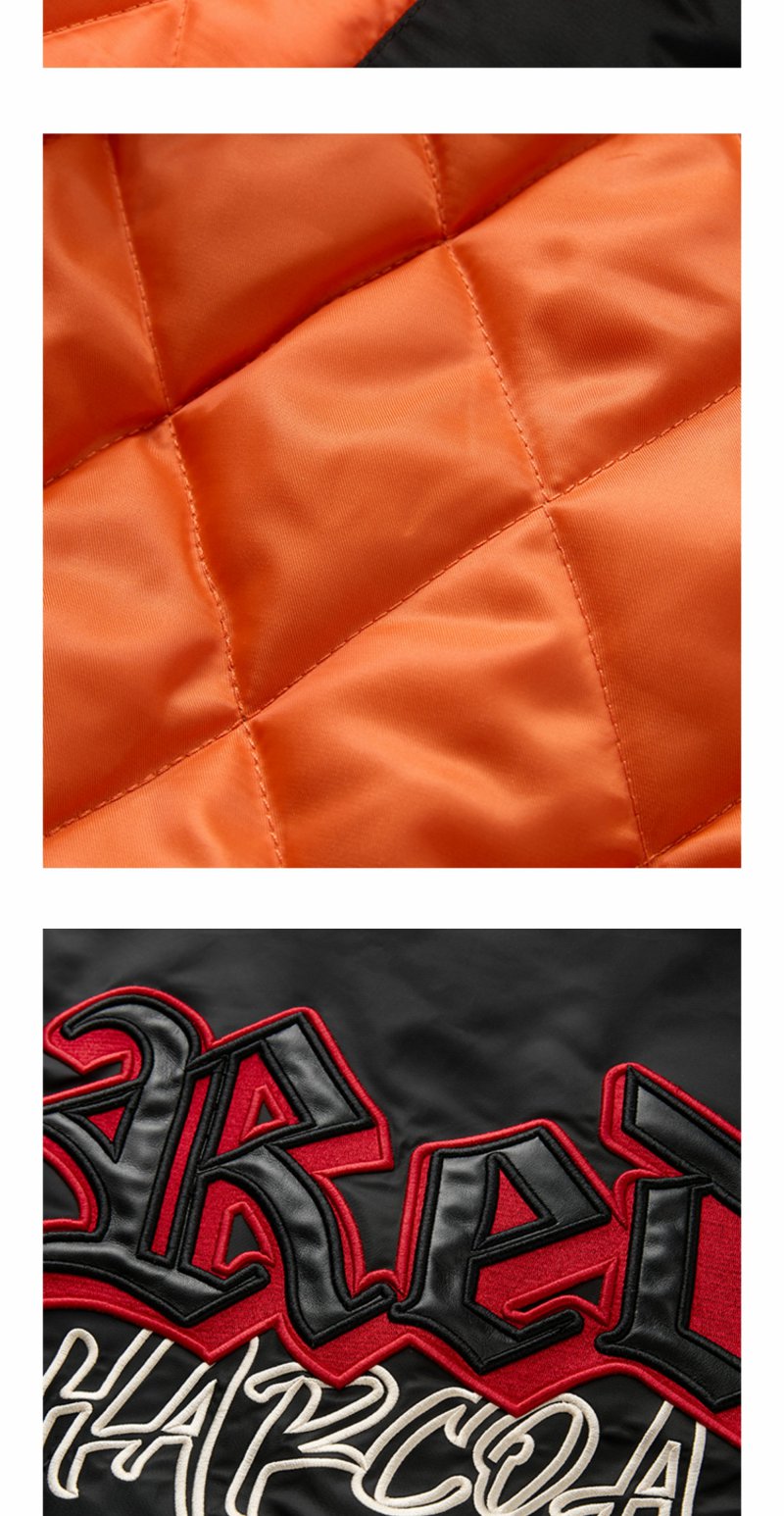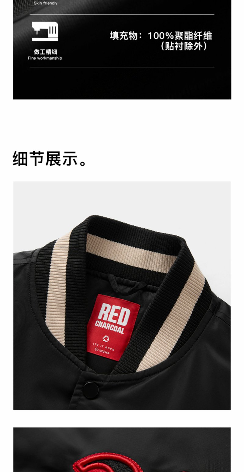 REDCHARCOAL 红炭黑色刺绣教练夹克男新款宽松潮流棒球领夹棉外套