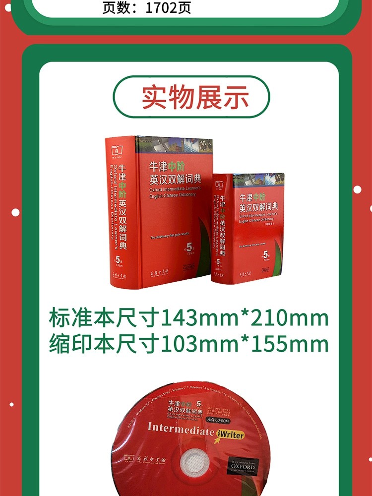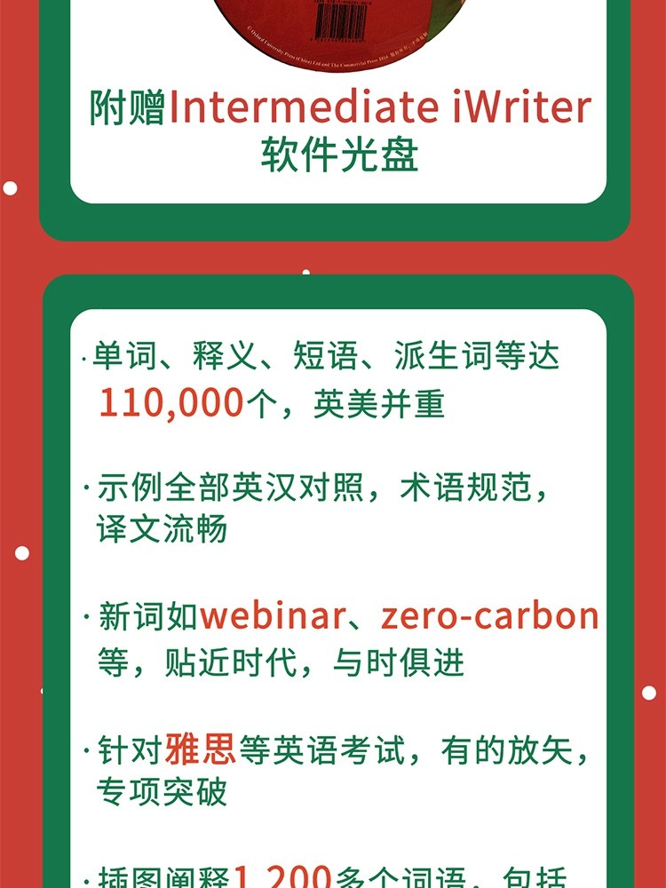 释义严谨,例证丰富,插图精美,实用性强,新增牛津写作指南及Intermediate iWriter写作指导软件,充分满足英语学习、考试的需要。