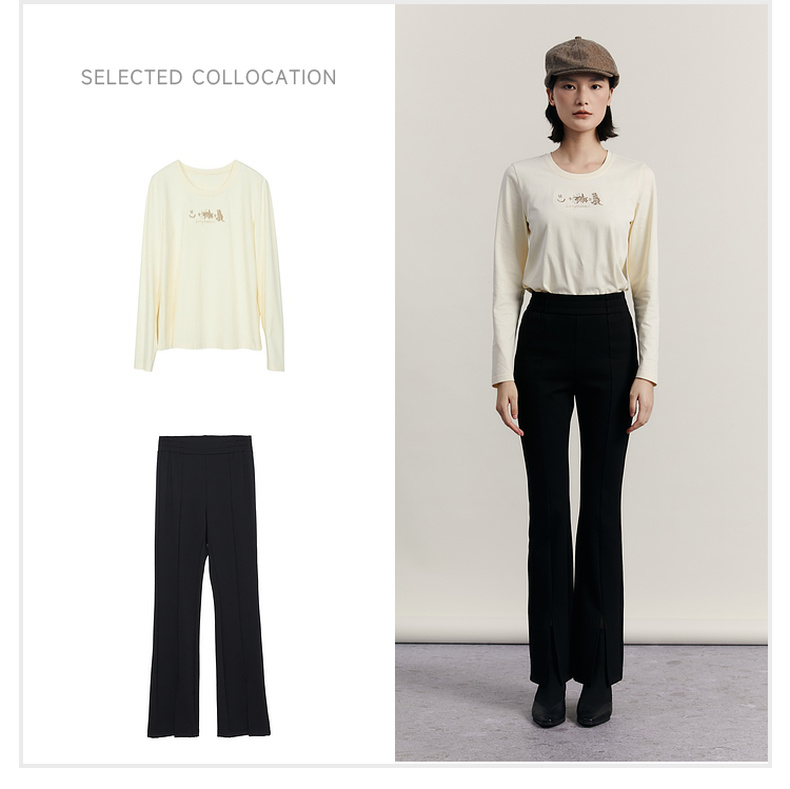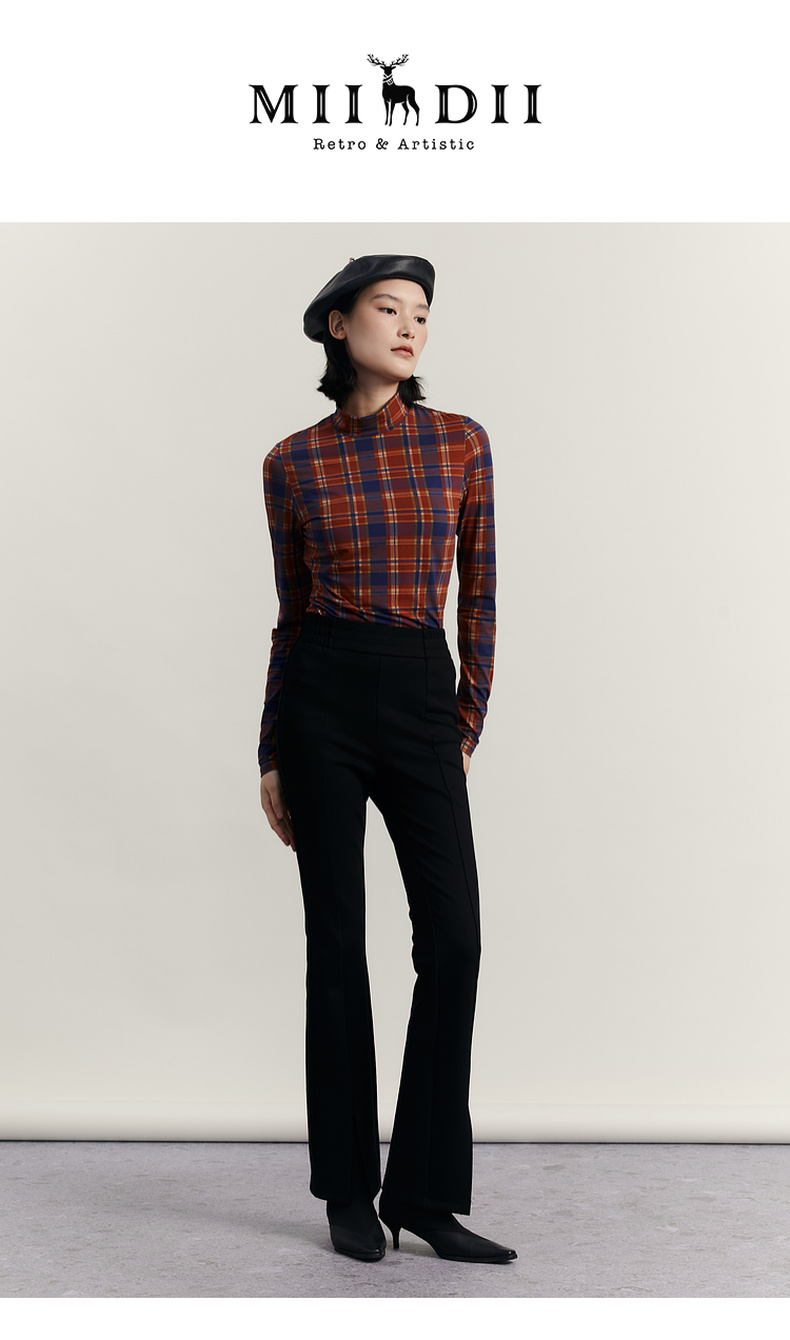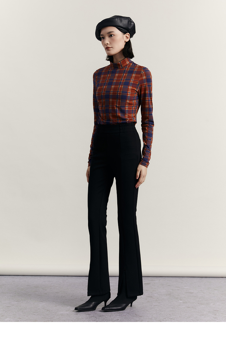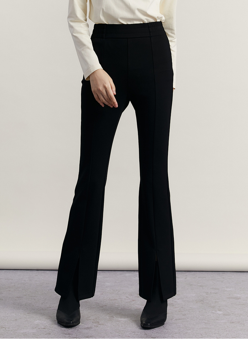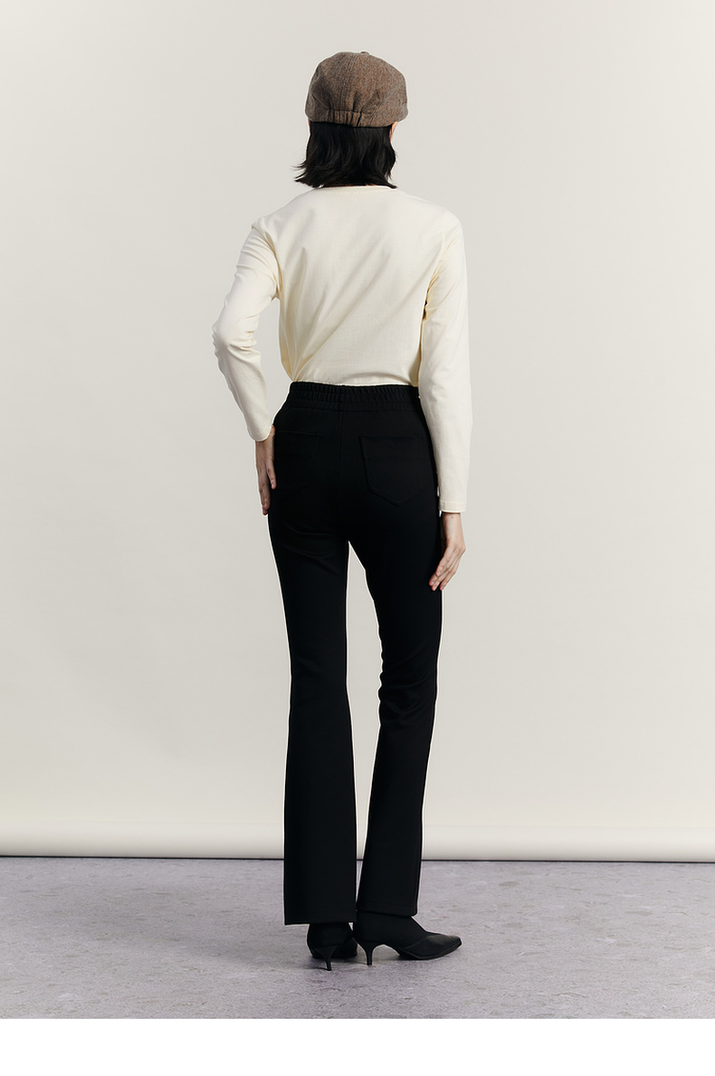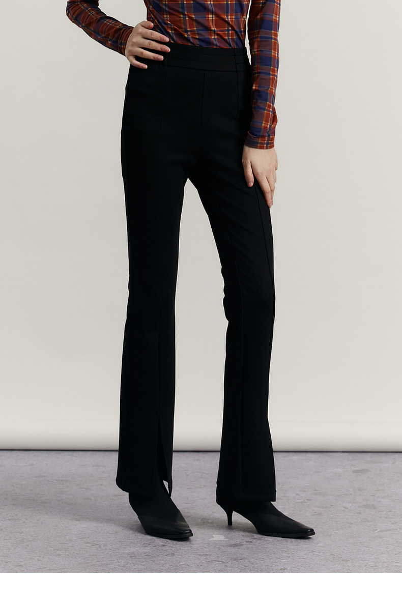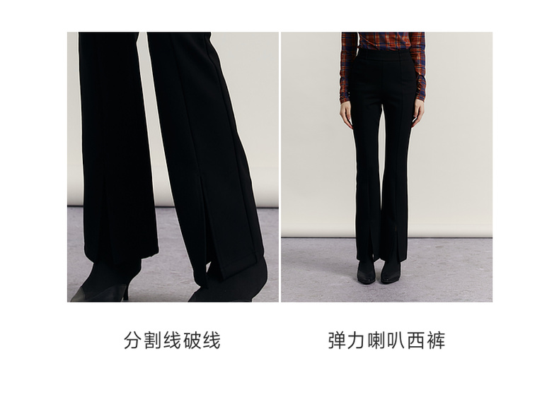 谜底紧身喇叭裤女2023冬新品修身弹力前开叉微喇长裤女234MK1601