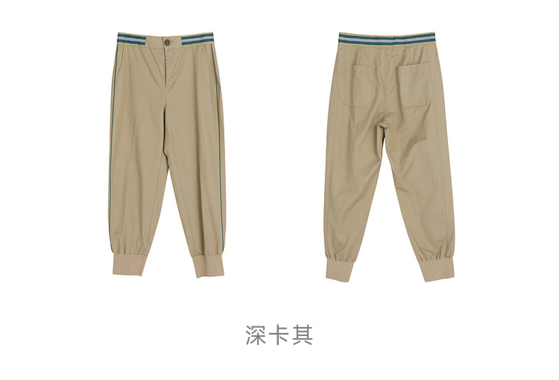 谜底九分休闲裤女2023春季新款简约时尚拼接束脚萝卜裤231MK0094