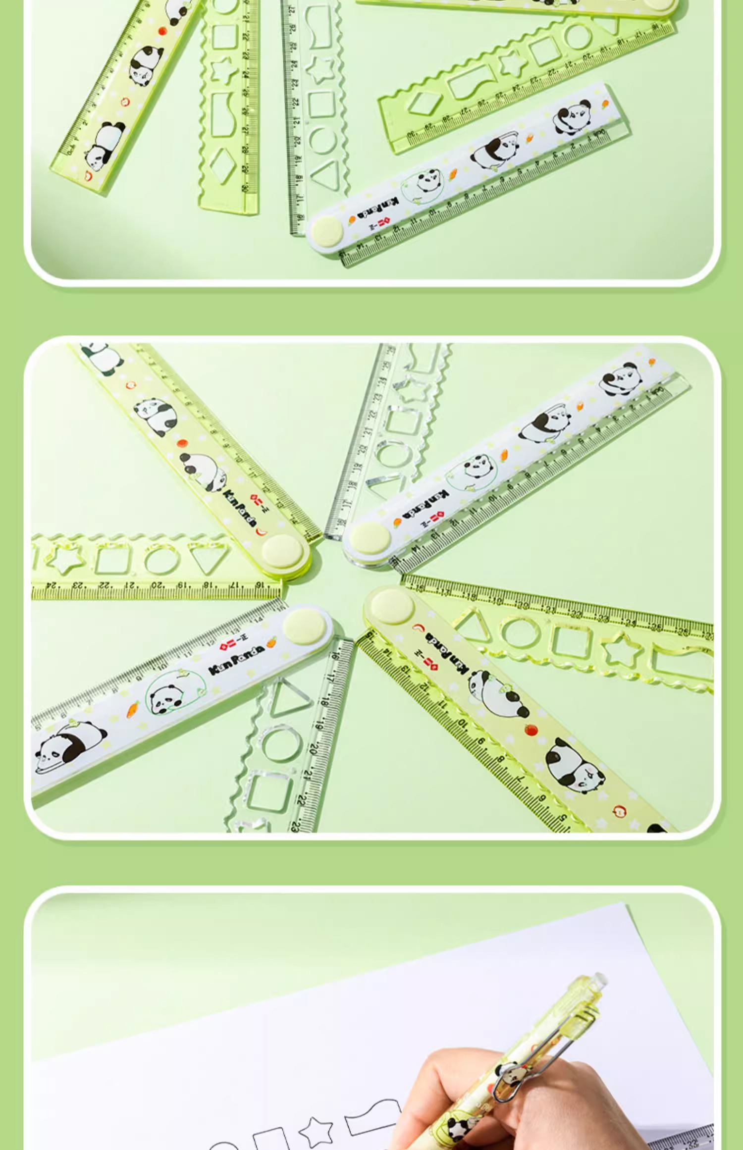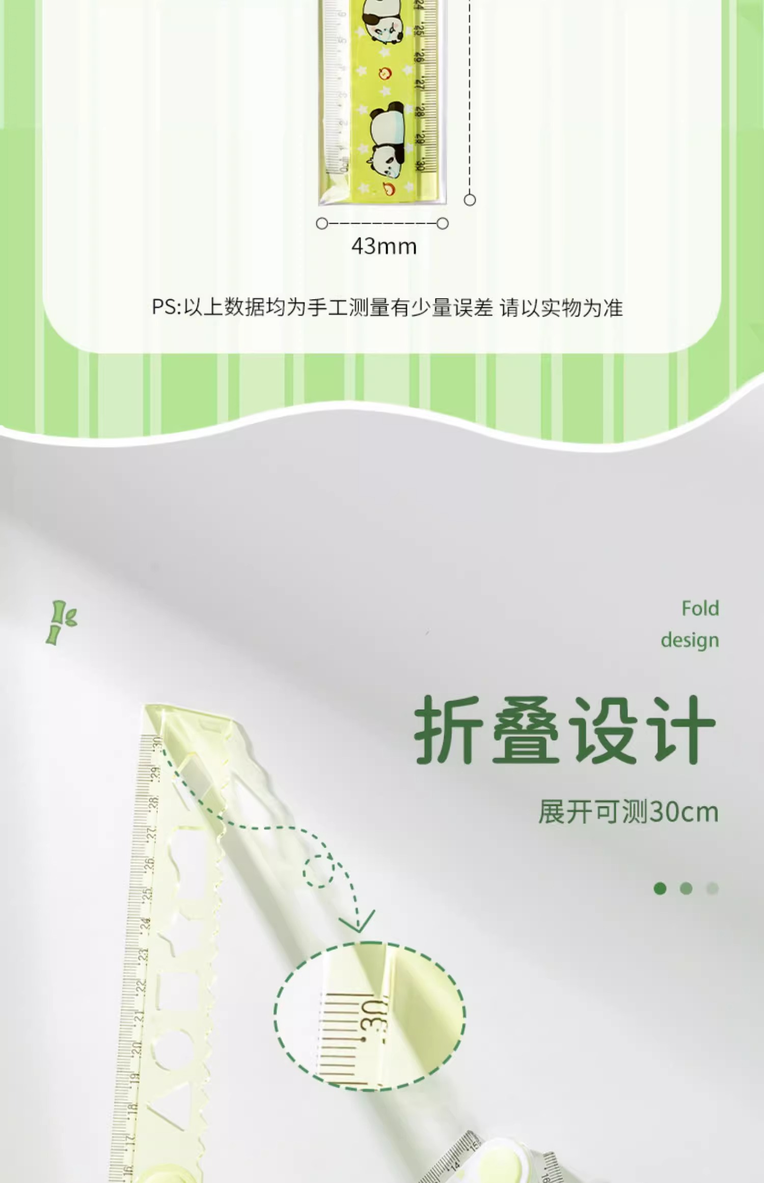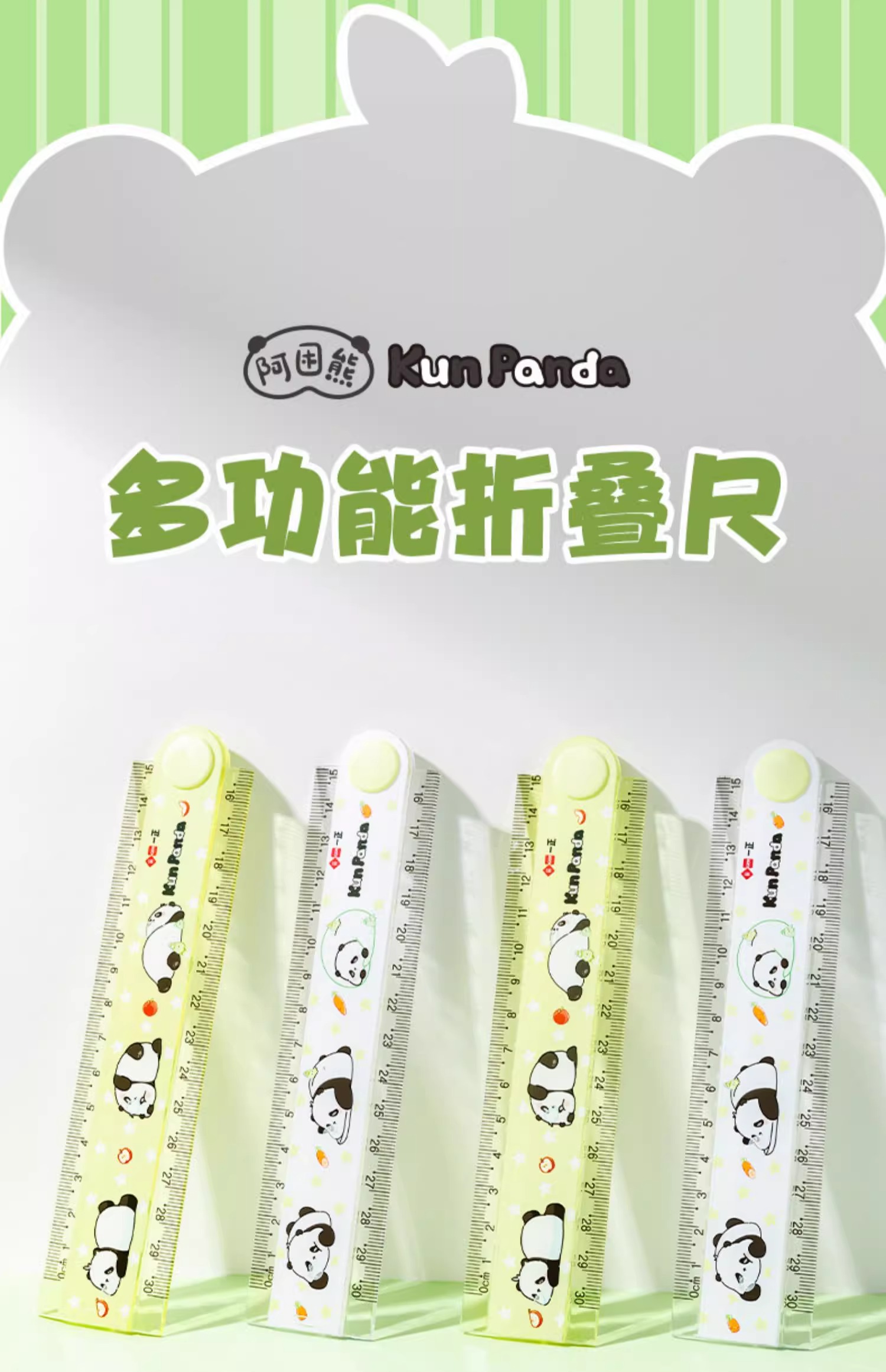 阿困熊折叠尺子多功能30cm长直尺带波浪线卡通可爱格尺折尺小学生幼儿园可用
