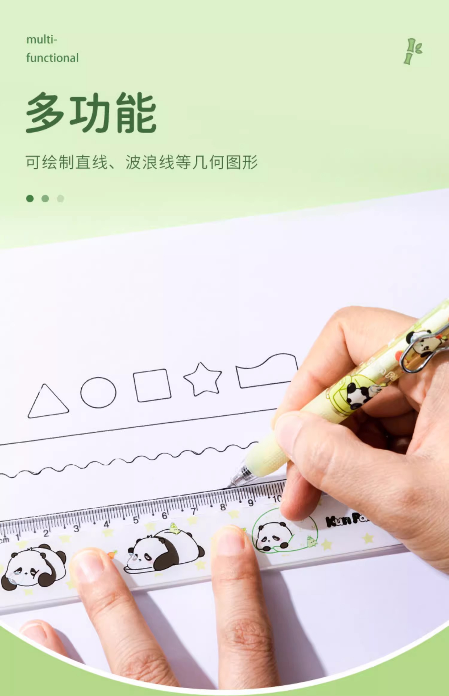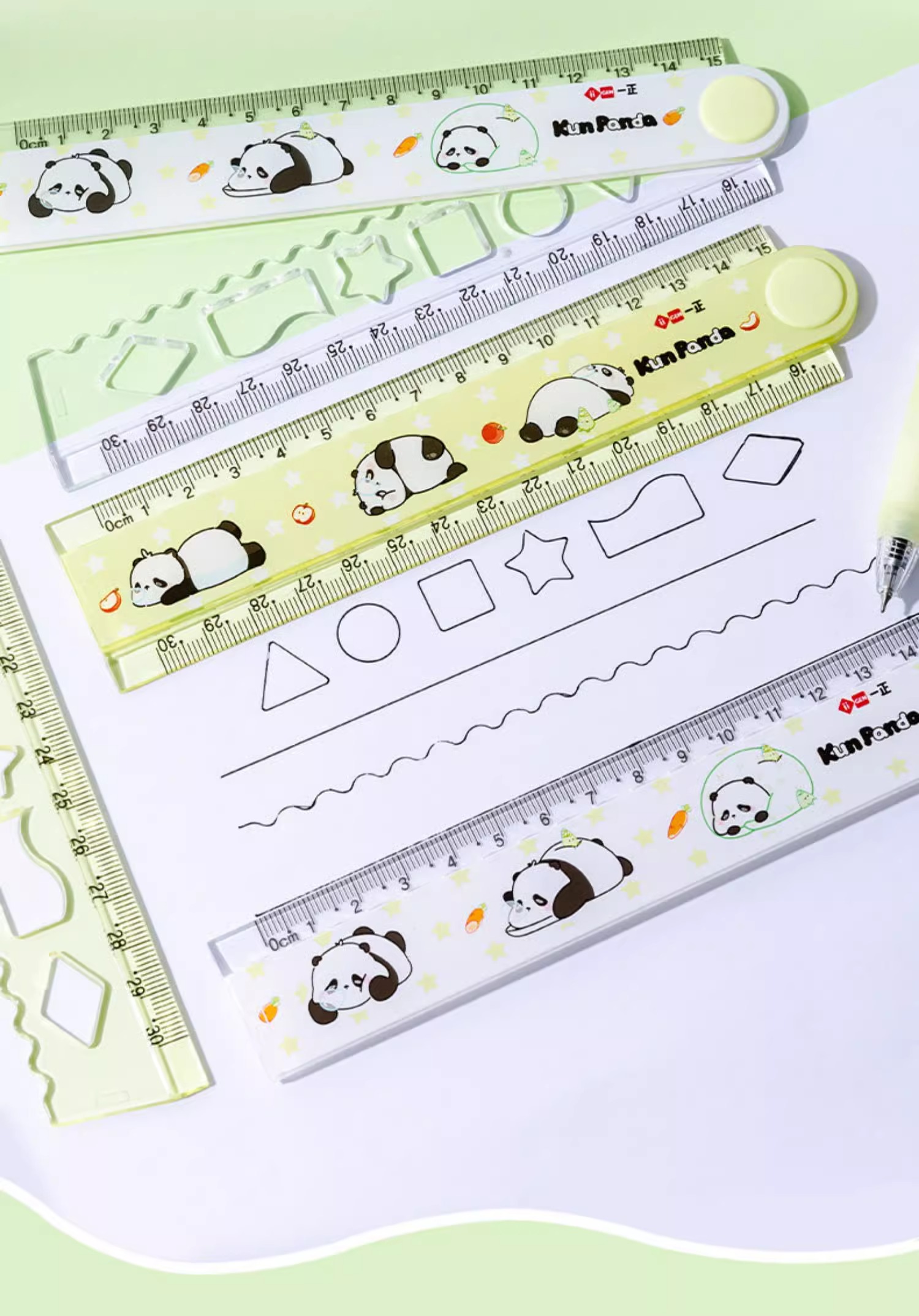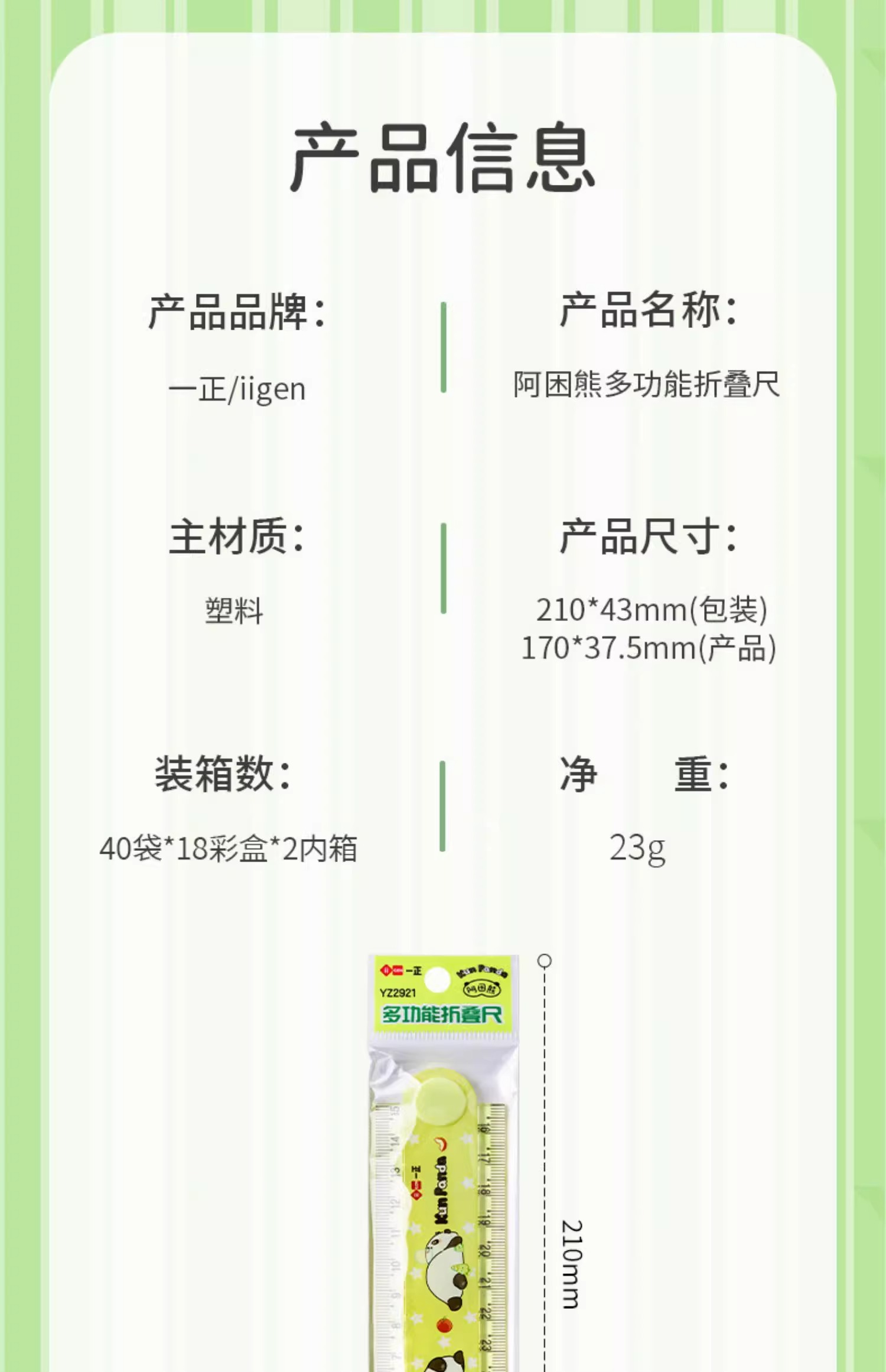 阿困熊折叠尺子多功能30cm长直尺带波浪线卡通可爱格尺折尺小学生幼儿园可用