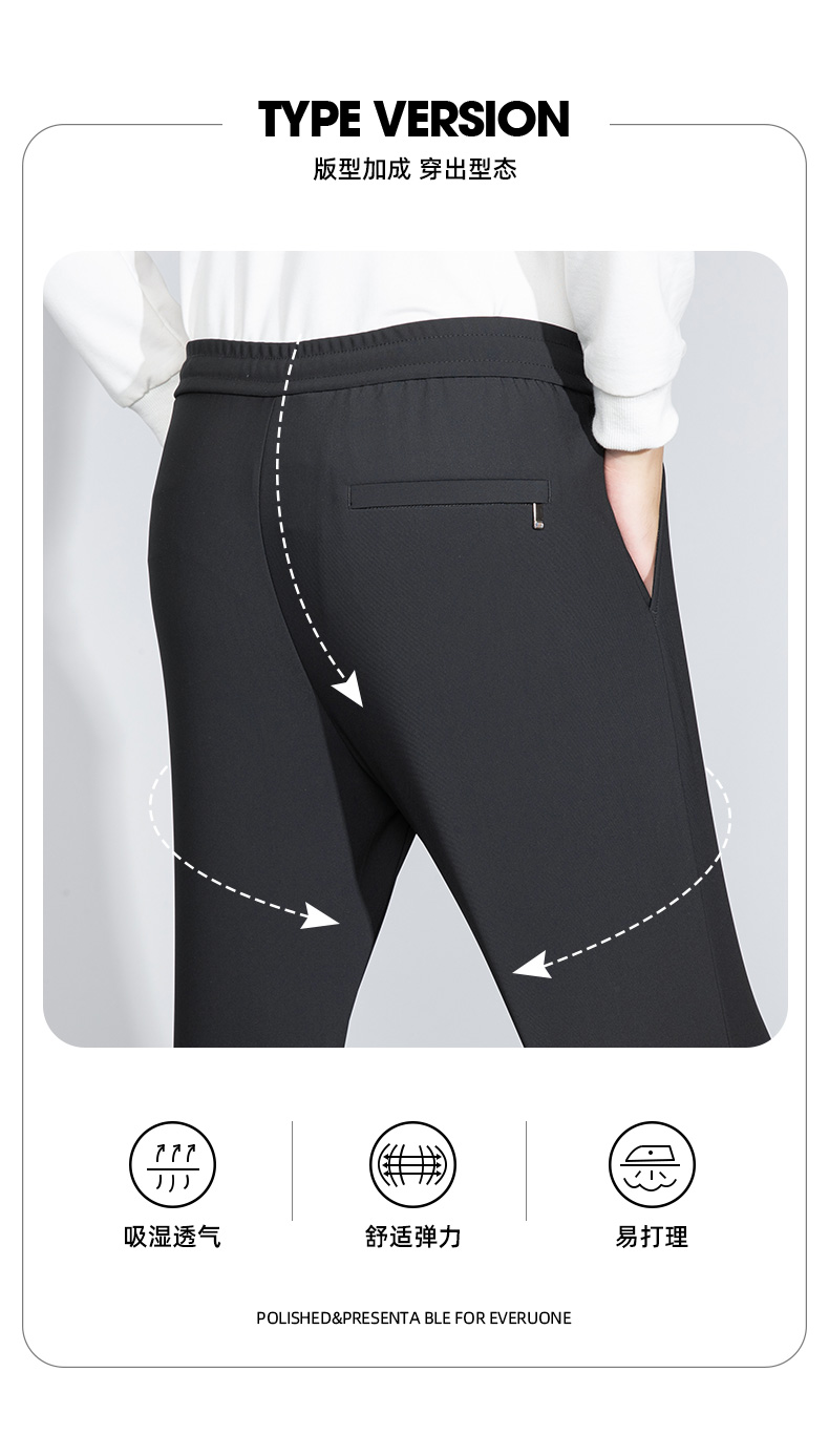 半身缘男裤 秋季松紧腰弹力免烫宽松直筒商务休闲裤339