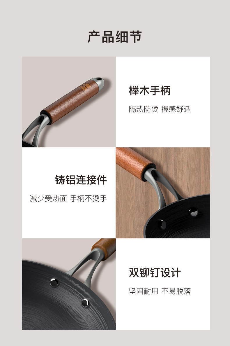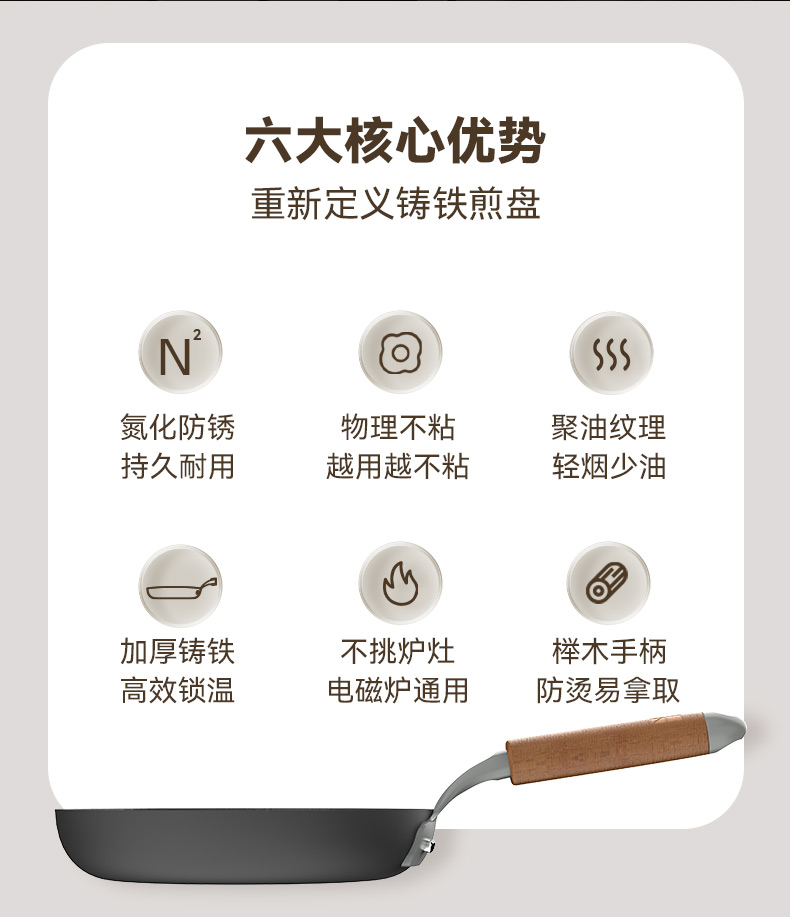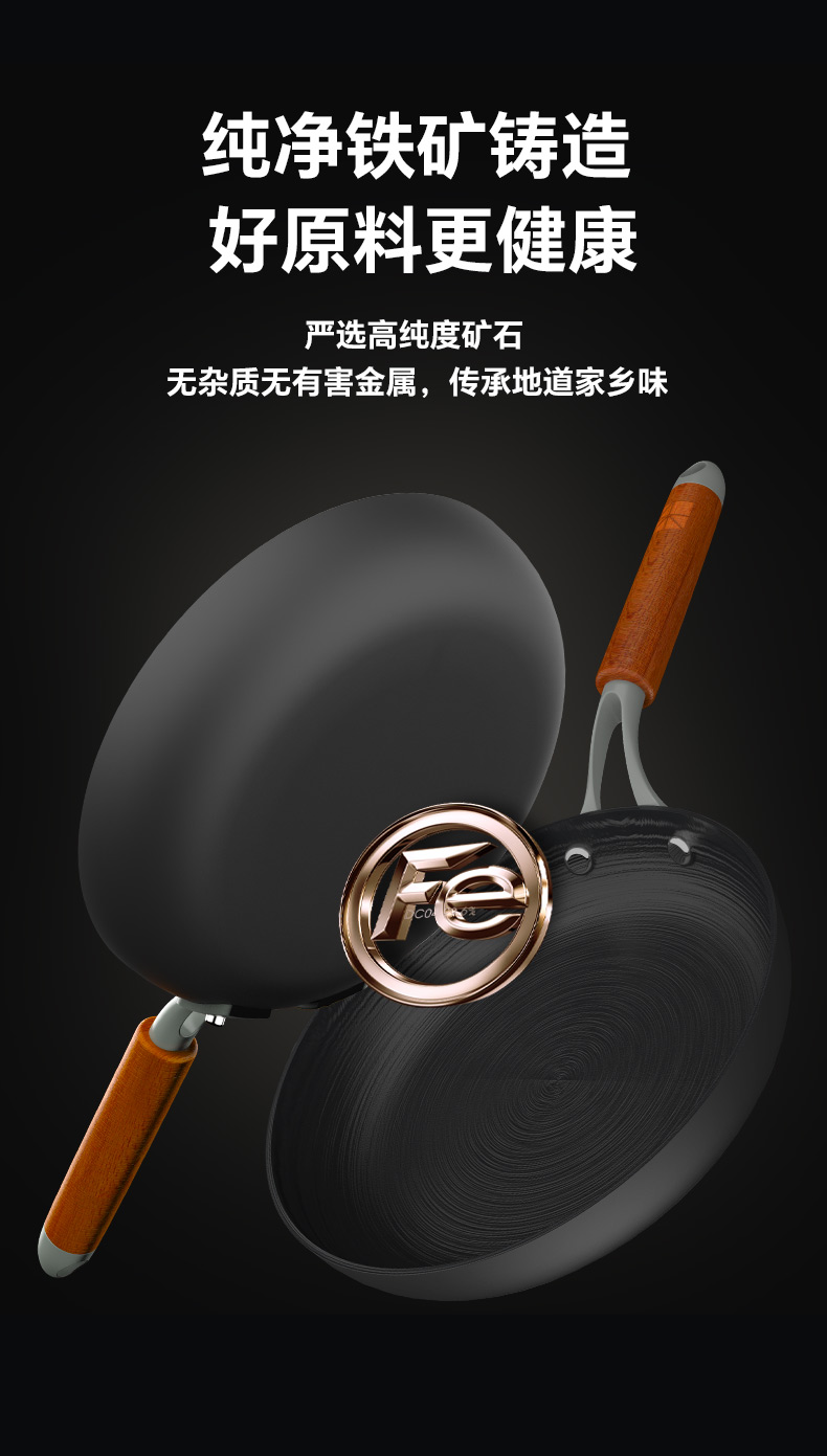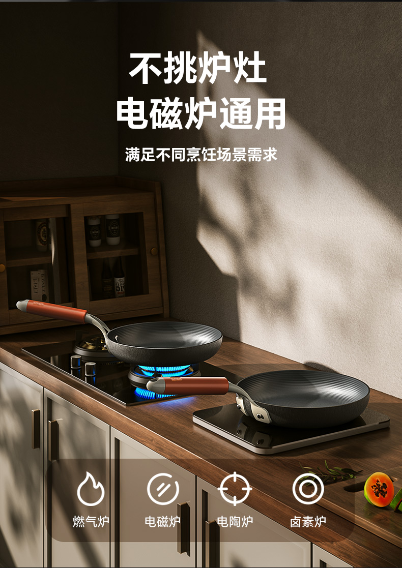 注意:非不粘锅,0涂层长期使用可达到物理不粘