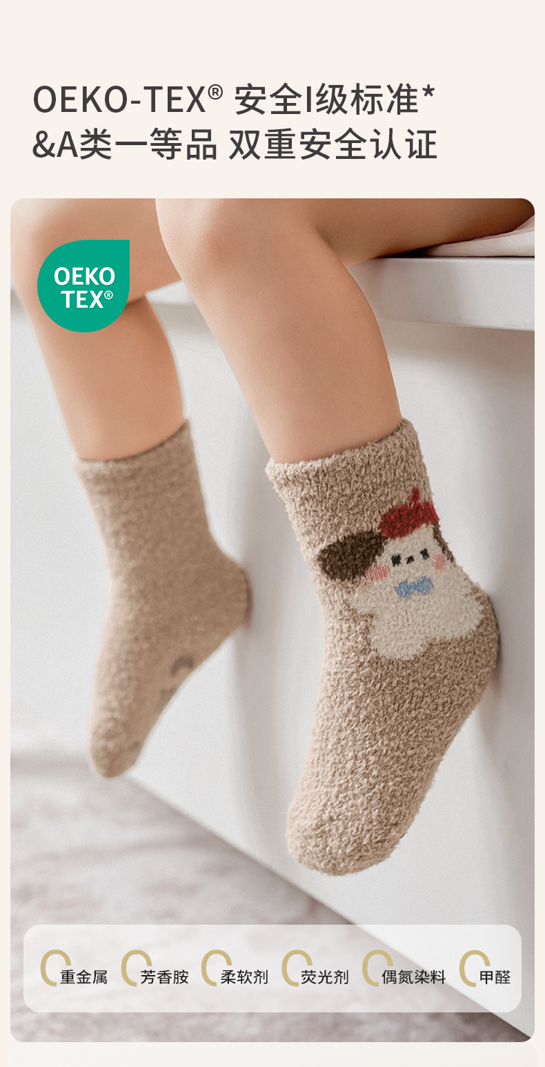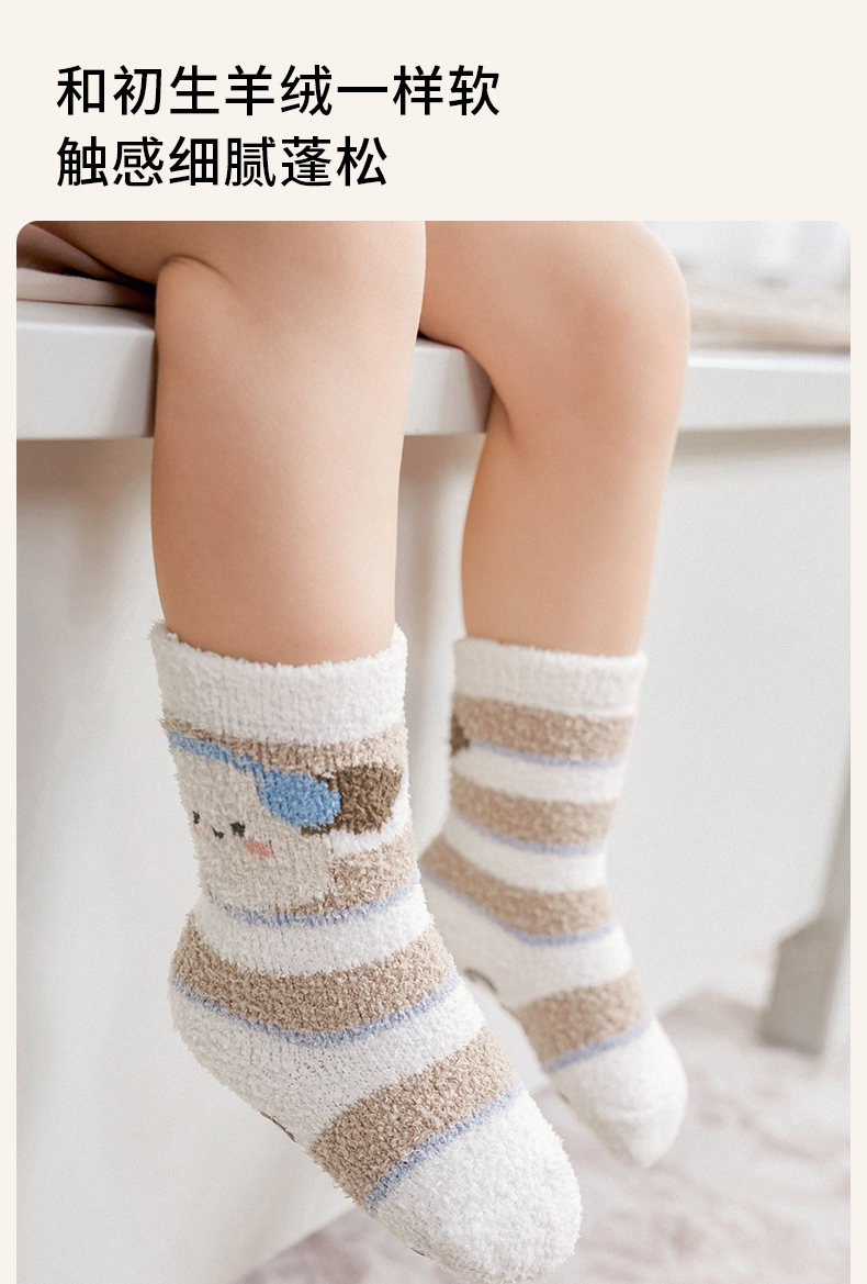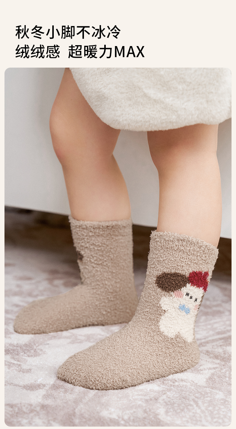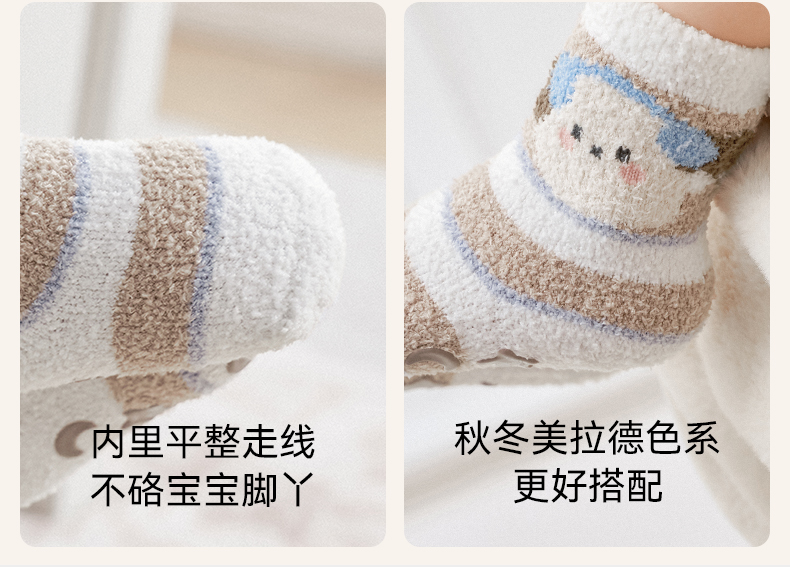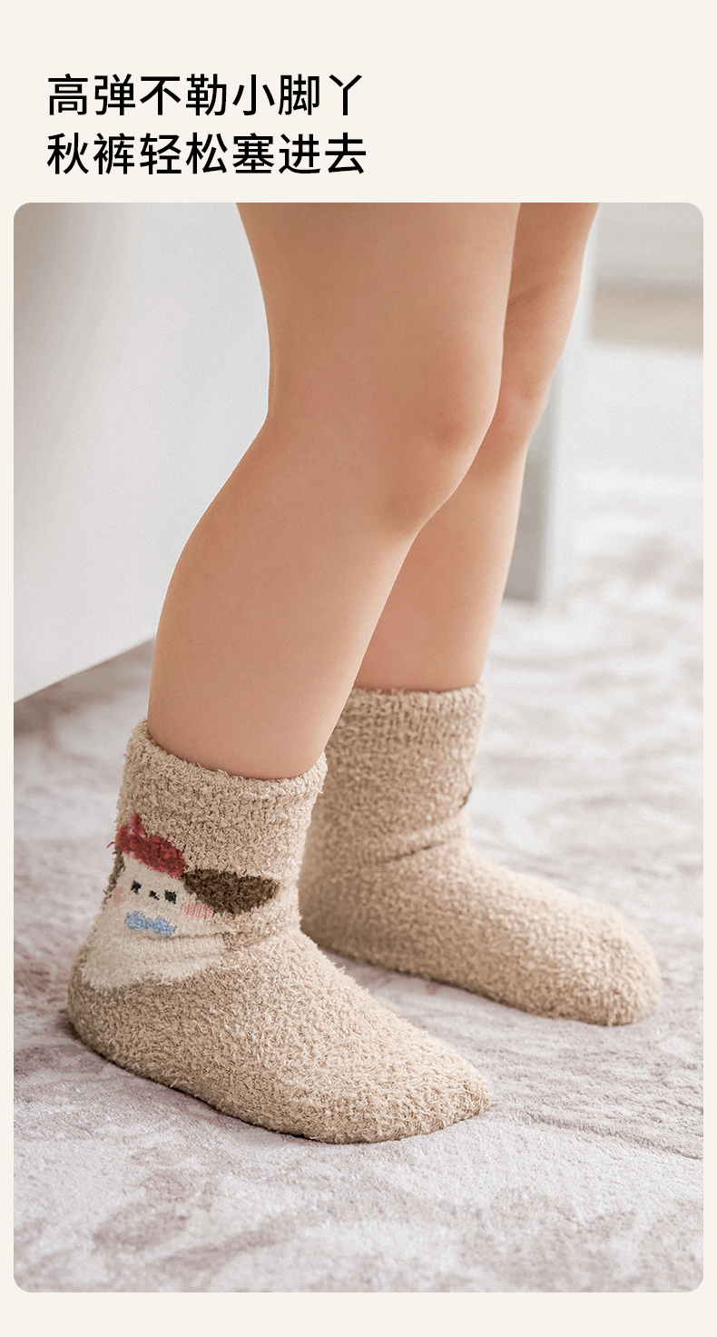 【婴童服配】嫚熙儿童袜子半边绒地板袜秋冬男女童宝宝婴儿防滑学步袜