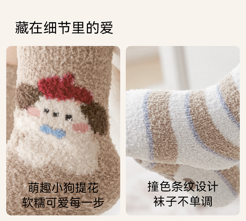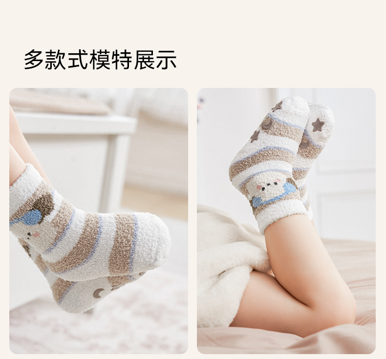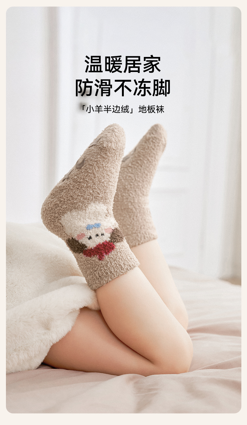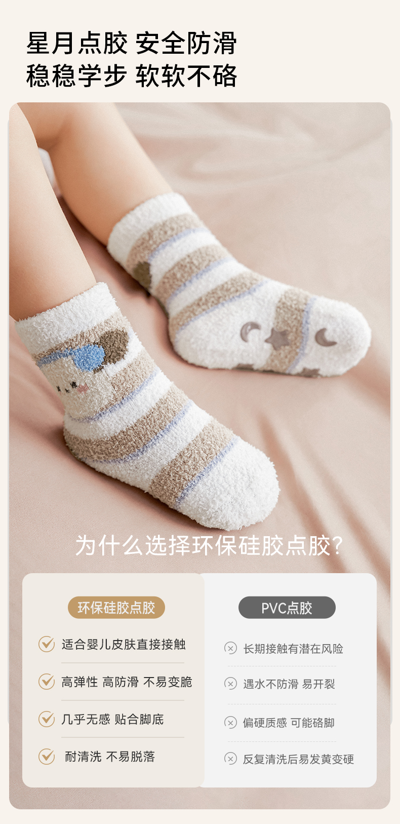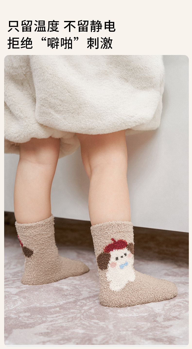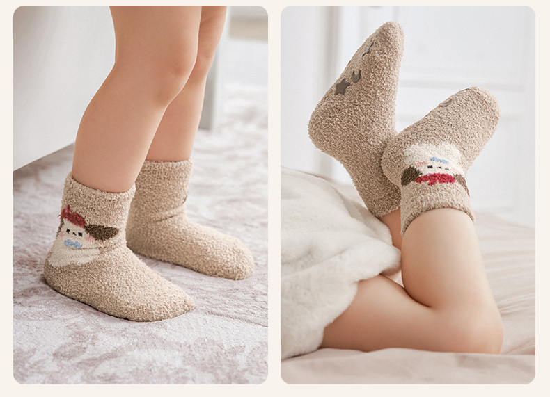 【婴童服配】嫚熙儿童袜子半边绒地板袜秋冬男女童宝宝婴儿防滑学步袜