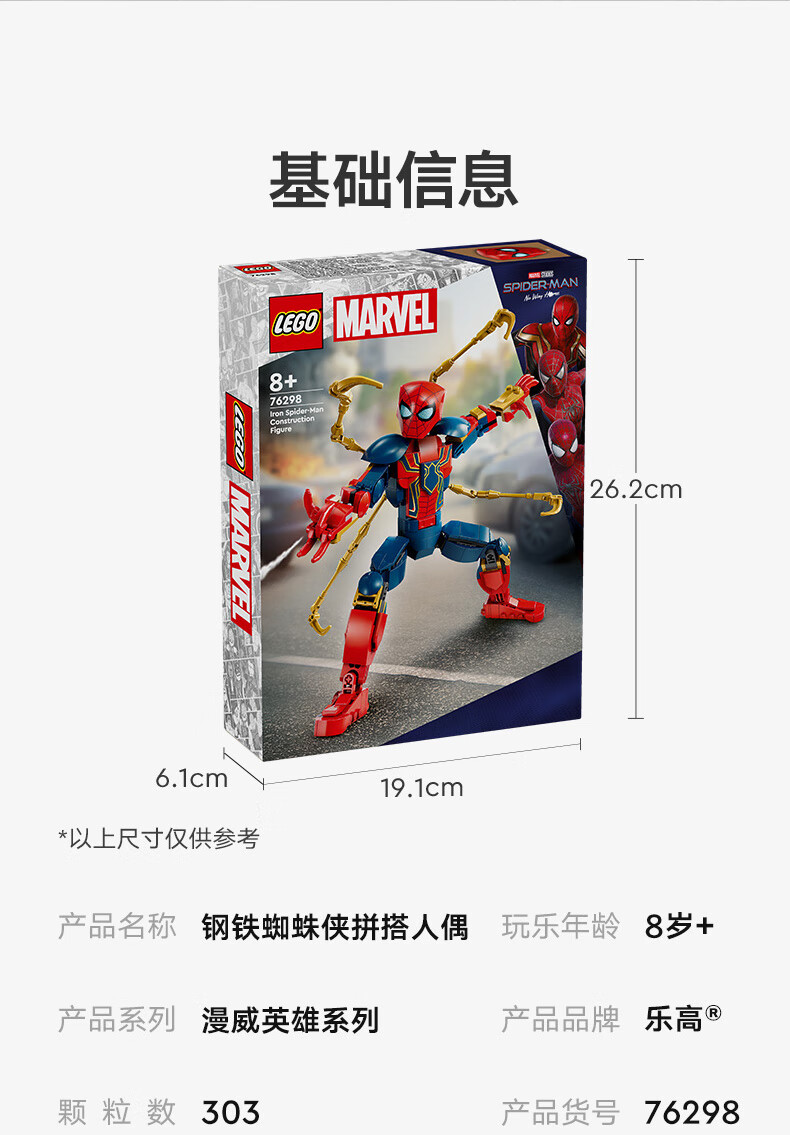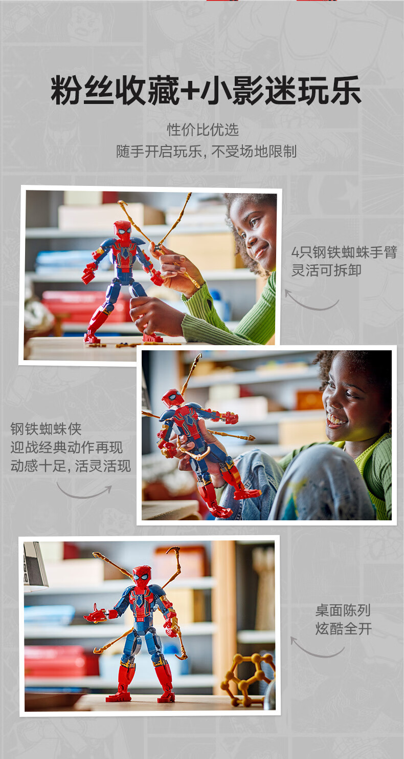 乐高积木 L76298 超级英雄系列钢铁蜘蛛侠拼搭人偶
