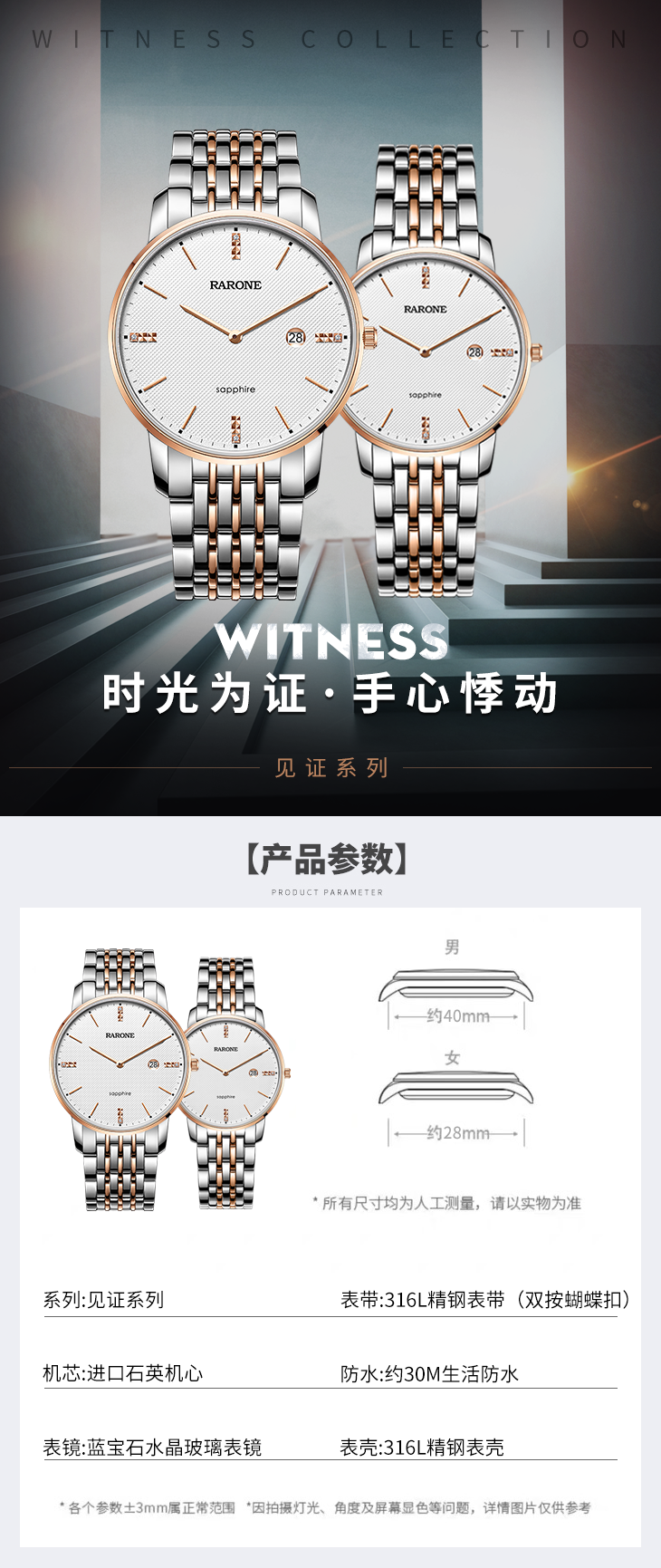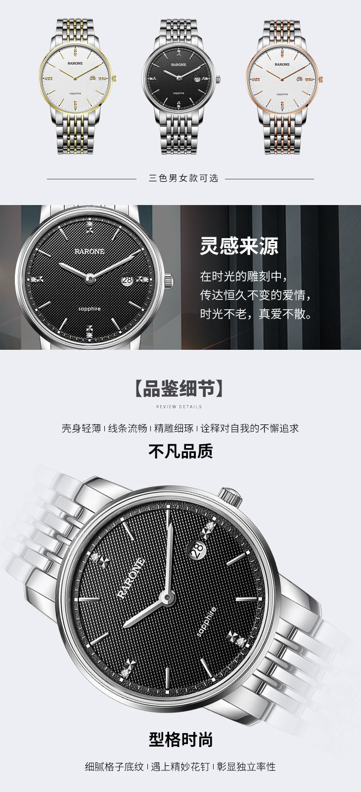 RARONE雷诺表高光系列石英对表832025