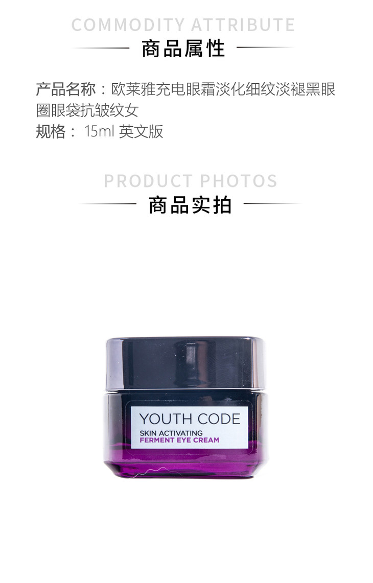 【2.14 积分当钱花】欧莱雅充电眼霜淡化细纹淡褪黑眼圈眼袋抗皱纹女15ml 23年11月英文版