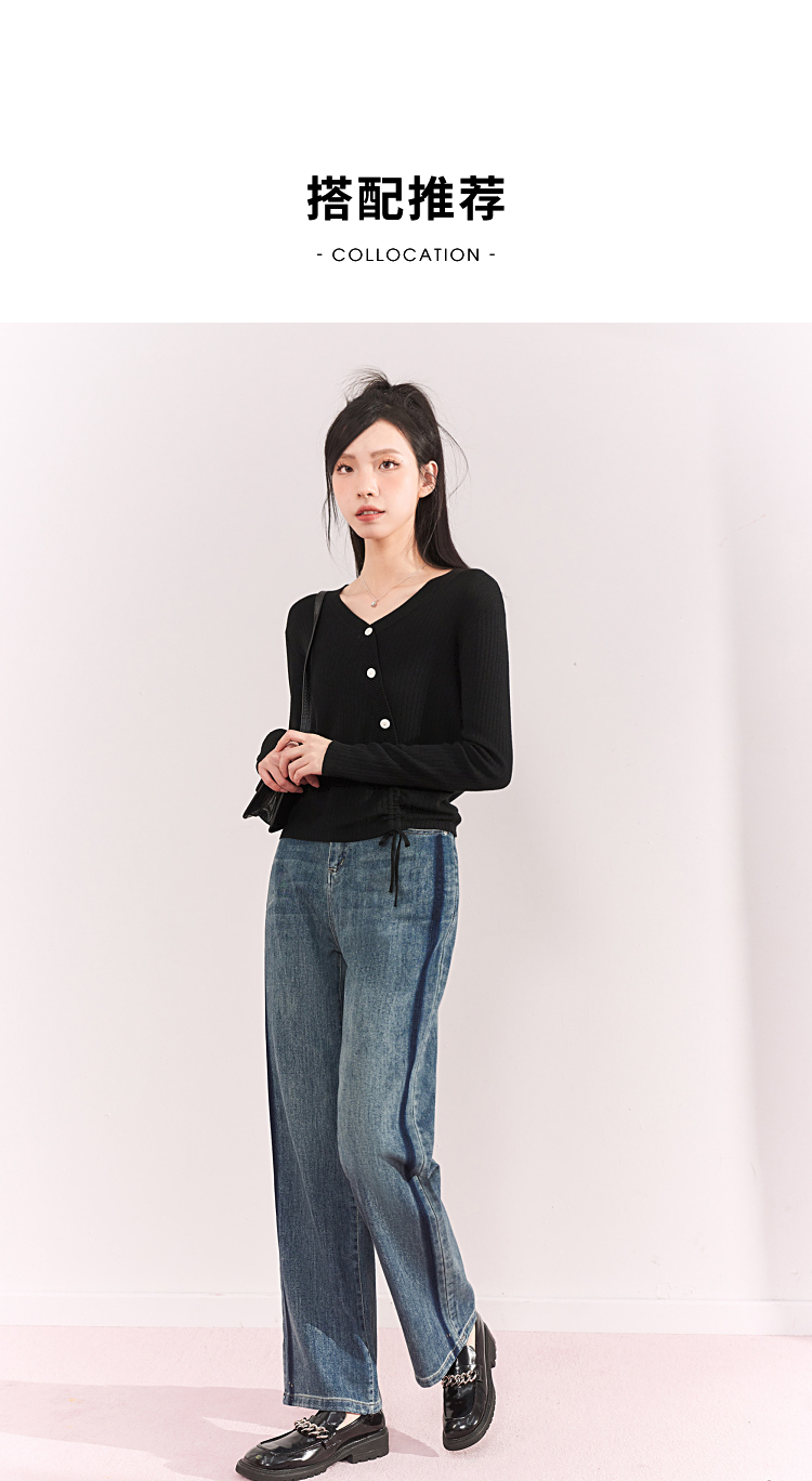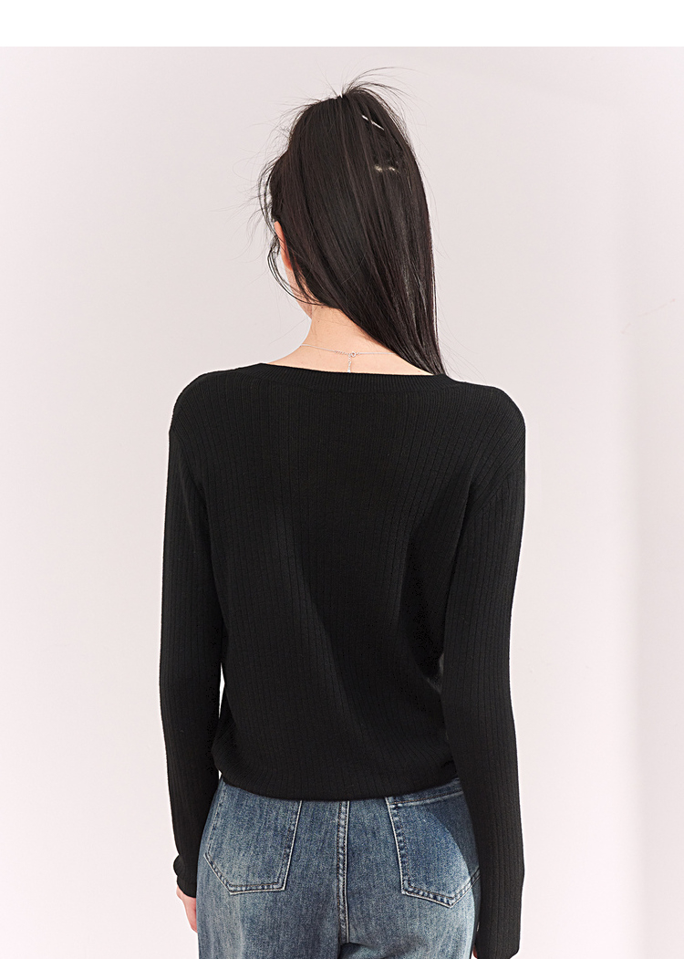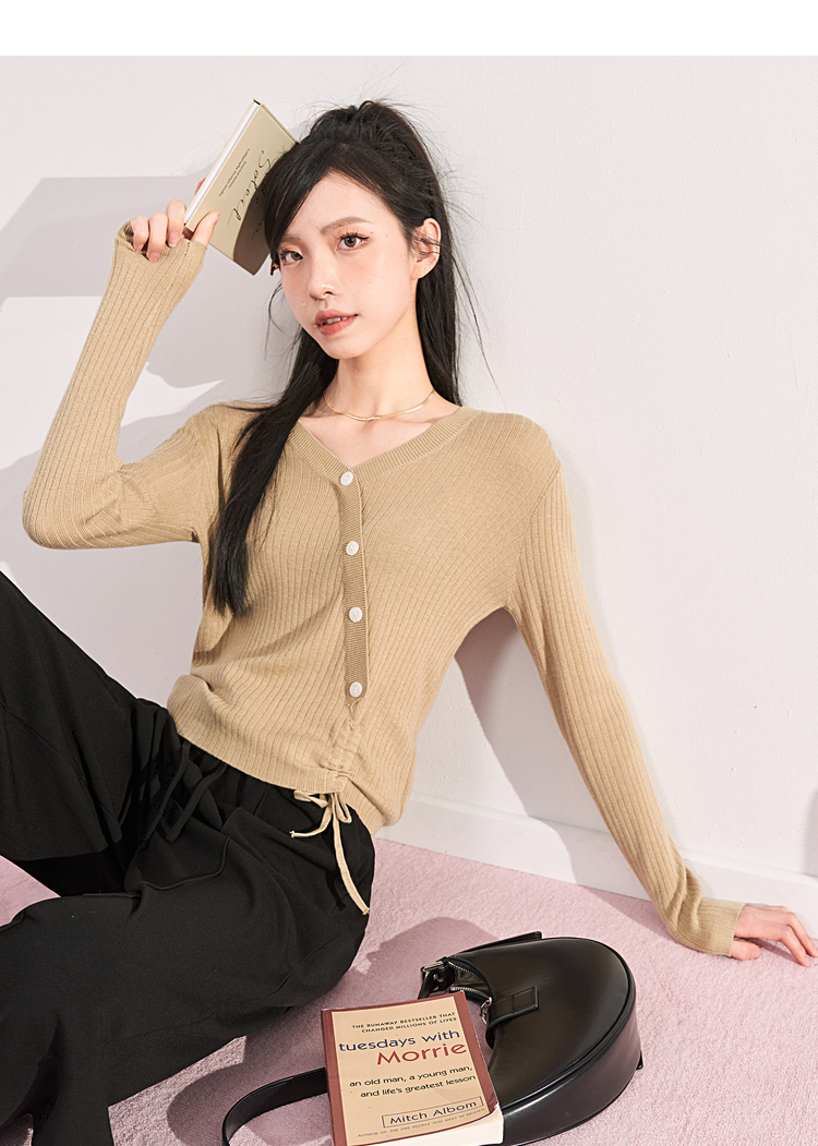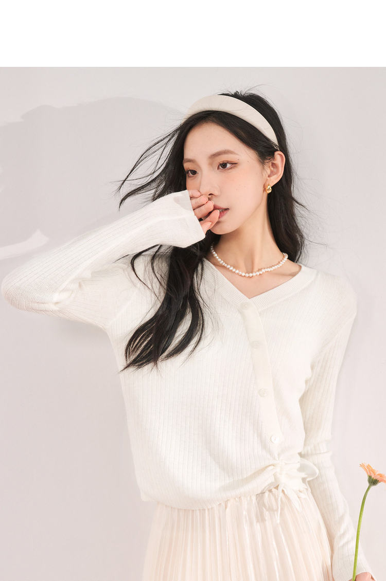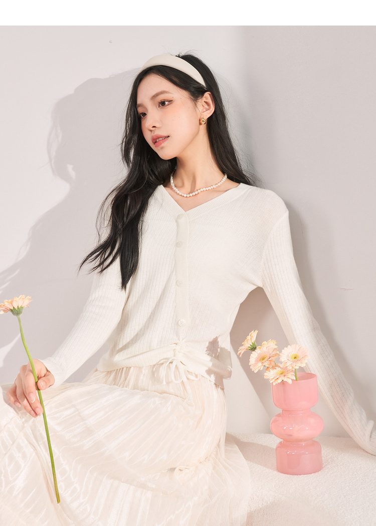 西遇薄款针织衫女2023春夏新款不规则设计感短款收腰V领长袖上衣10030918