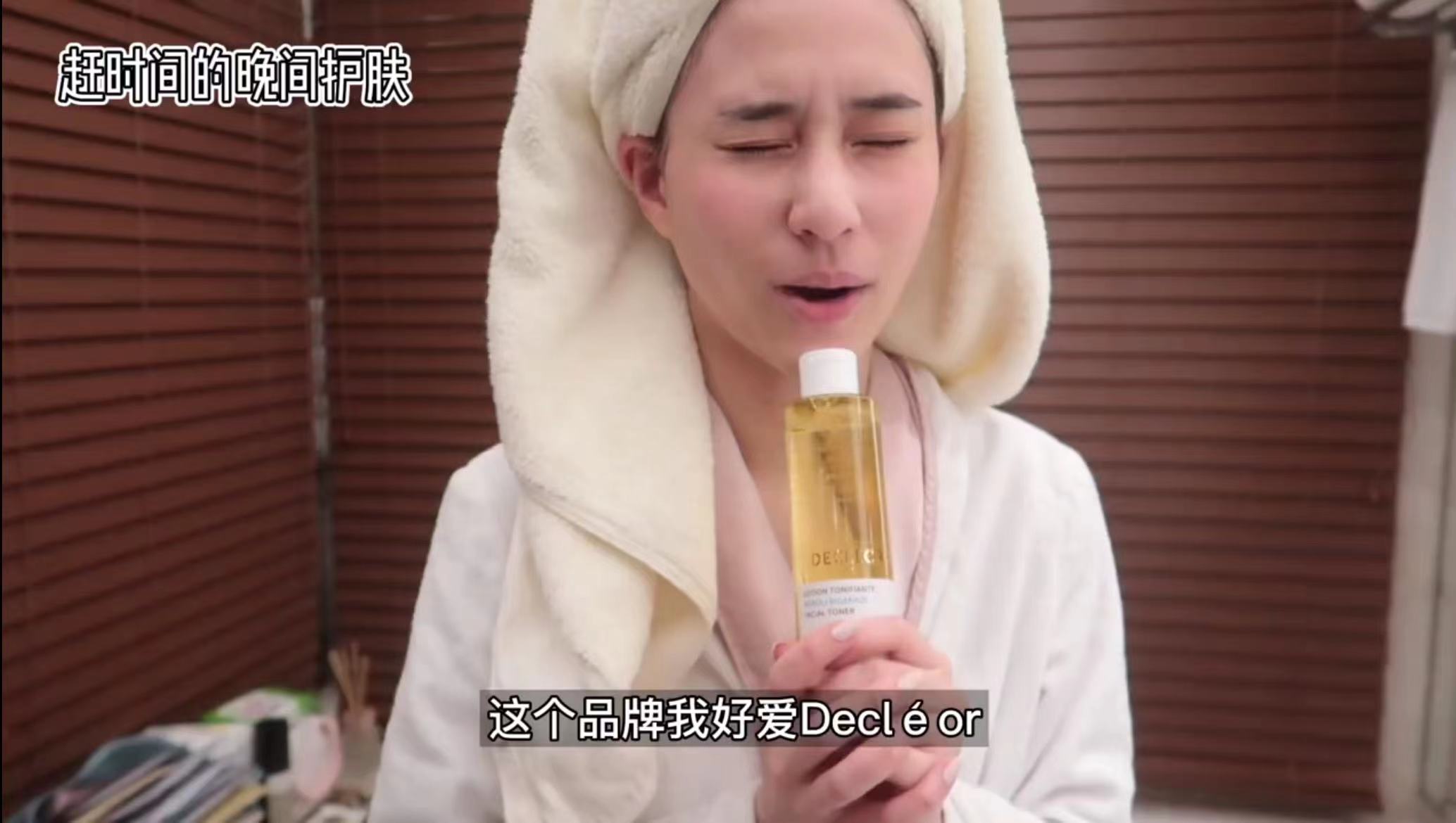 步骤:卸妆后,柔肤水浸湿化妆棉,顺着肌肤纹理轻轻拭擦,清除残留彩妆
