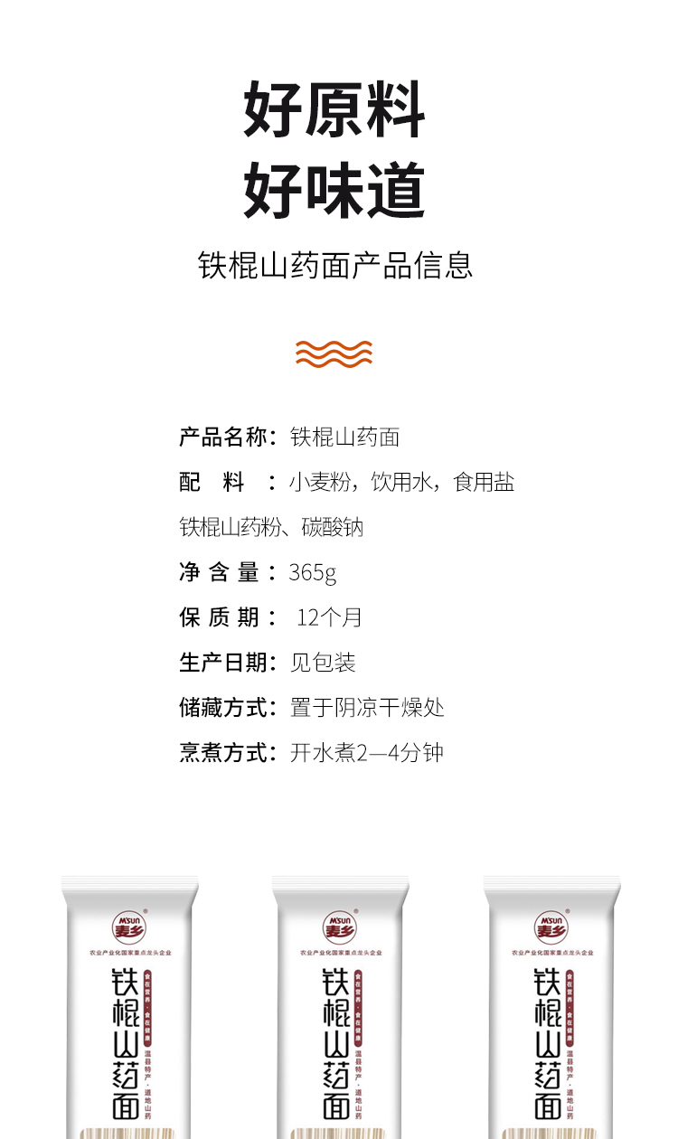 【自营】麦乡 温县铁棍山药面 简装 365g*3袋