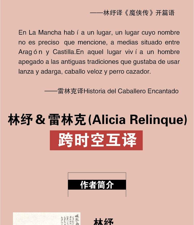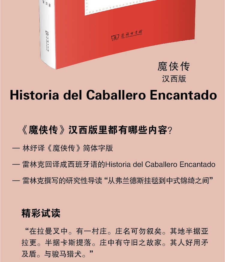 商务印书馆于1933年出版林纾、陈家麟所译《魔侠传》,是《堂吉诃德》这部经典世界名著首次在国内出版,开启了国人了解西班牙文学的先河,为如今《堂吉诃德》成为国人家喻户晓的世界名著奠定了基础。如今西班牙汉学家雷林克将林纾译本再次译成西班牙文,让这部经典文学名著重新彰显活力。