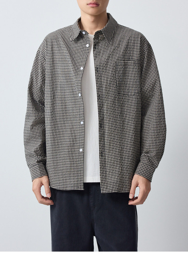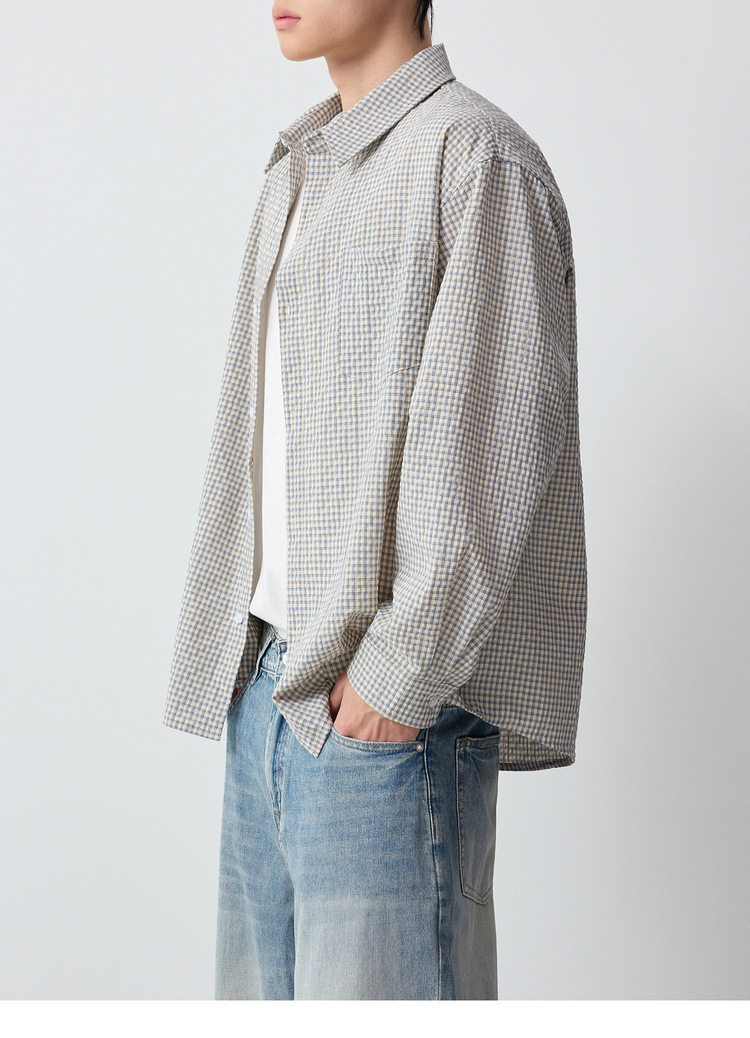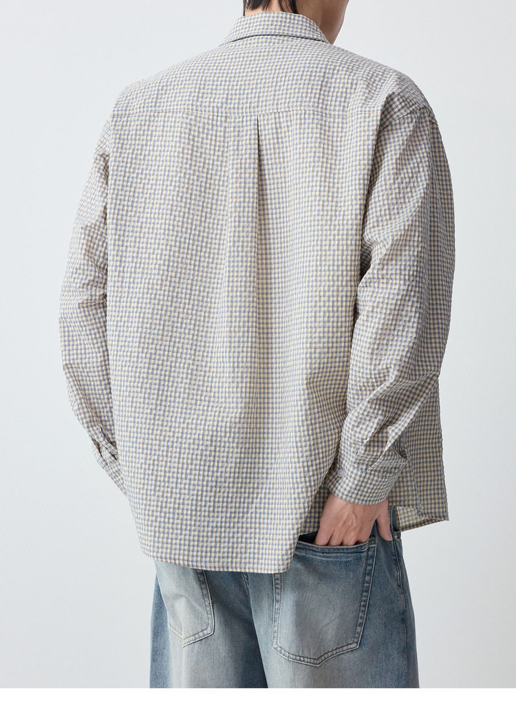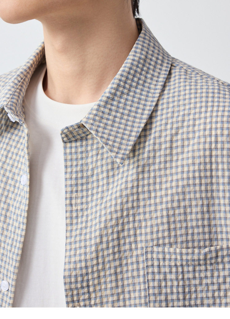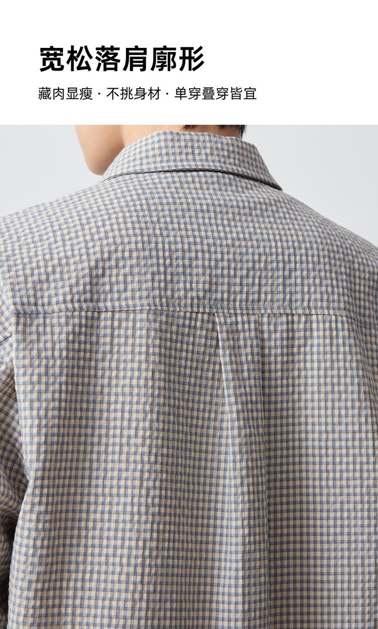 墨麦客男装美式休闲格子男士衬衫2026春季新款泡泡纱衬衣男50366.