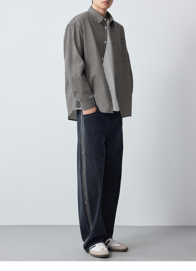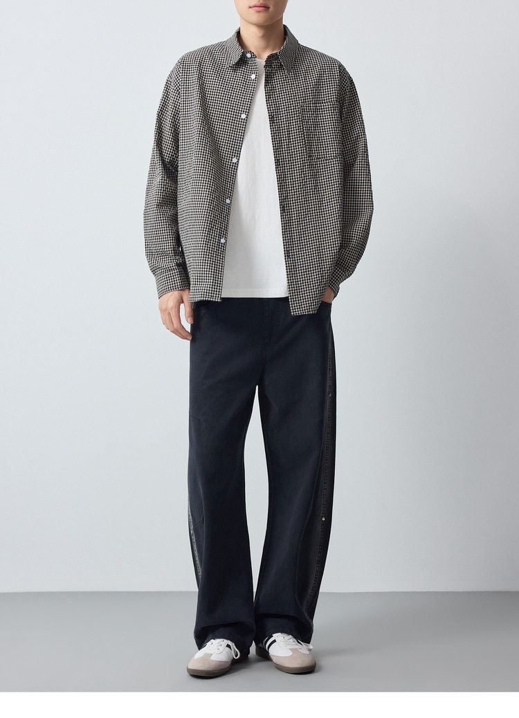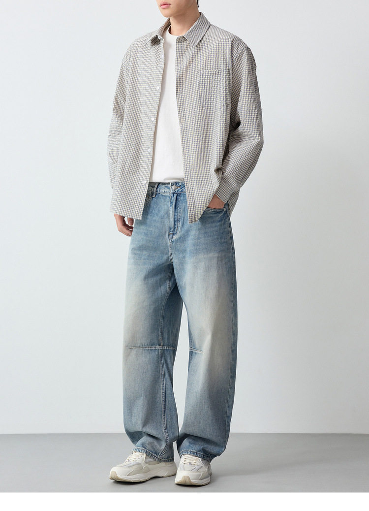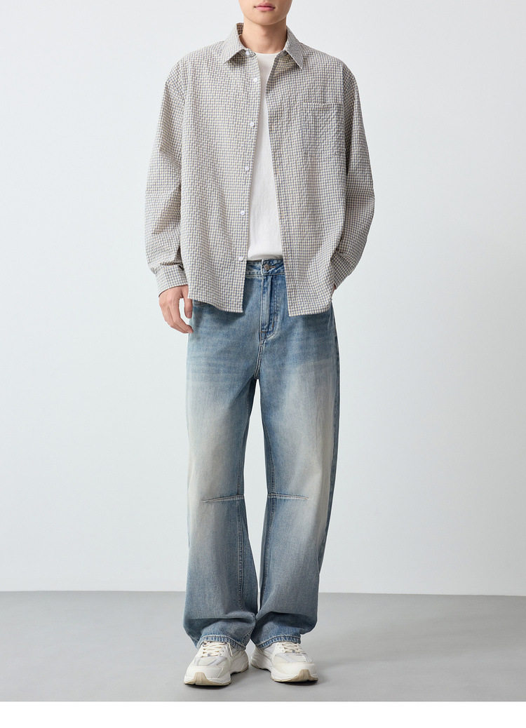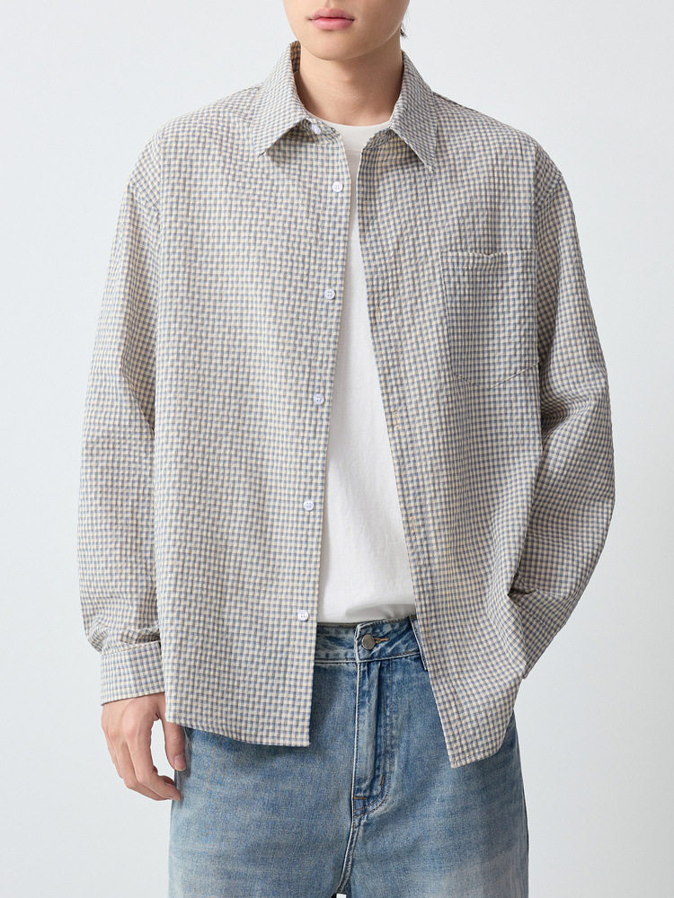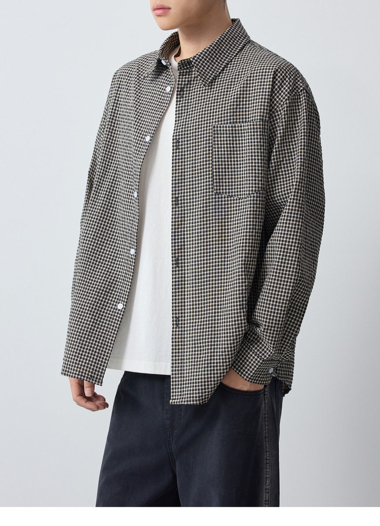 墨麦客男装美式休闲格子男士衬衫2026春季新款泡泡纱衬衣男50366.