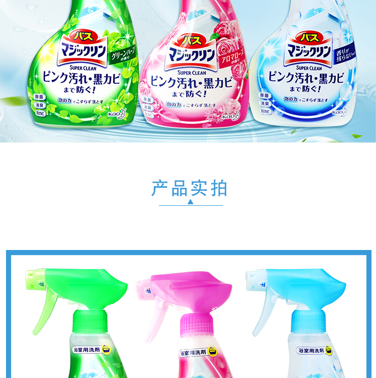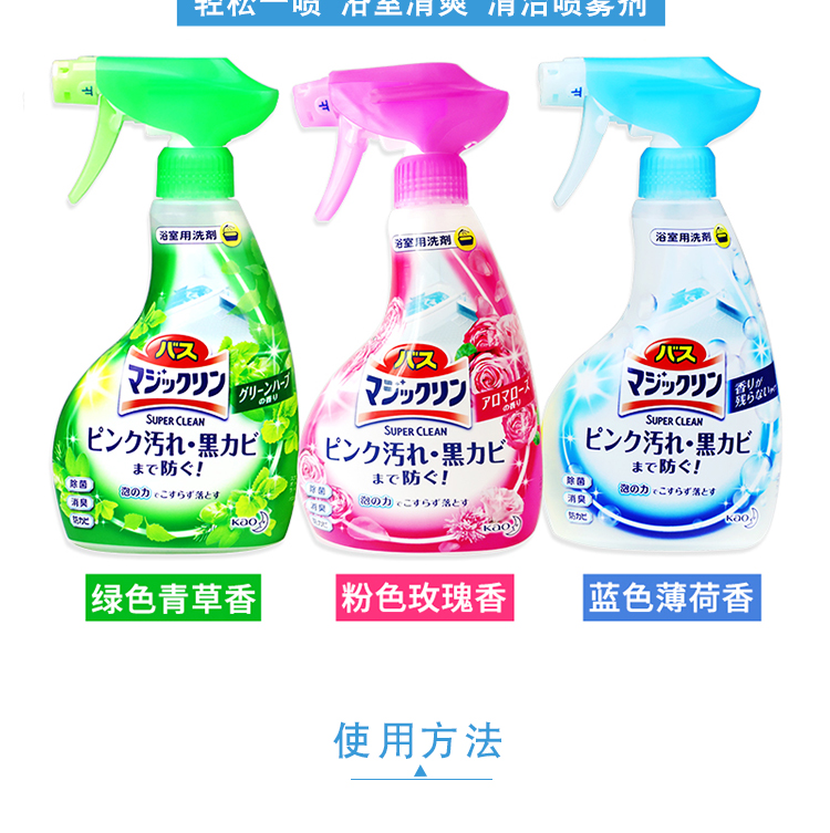 日本进口花王 浴室泡沫清洁剂去水垢黄垢除菌亮白卫浴清洁喷雾 玫瑰香 380ml