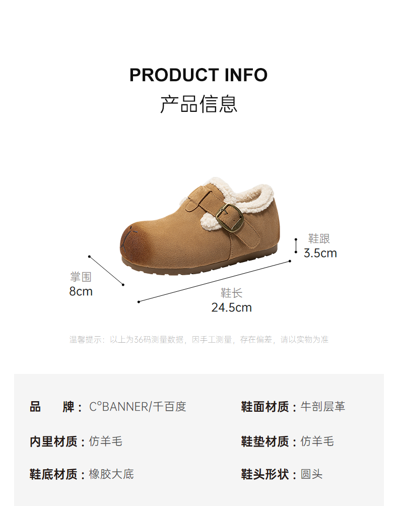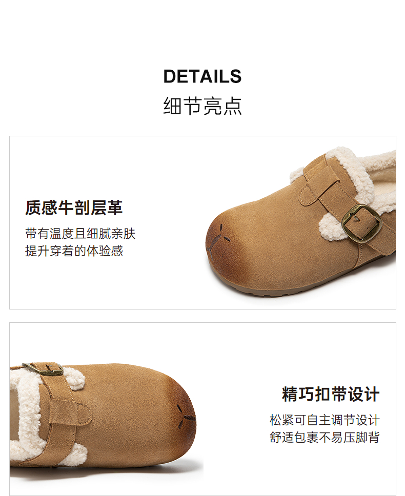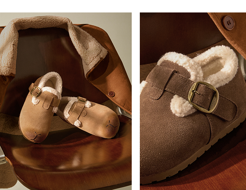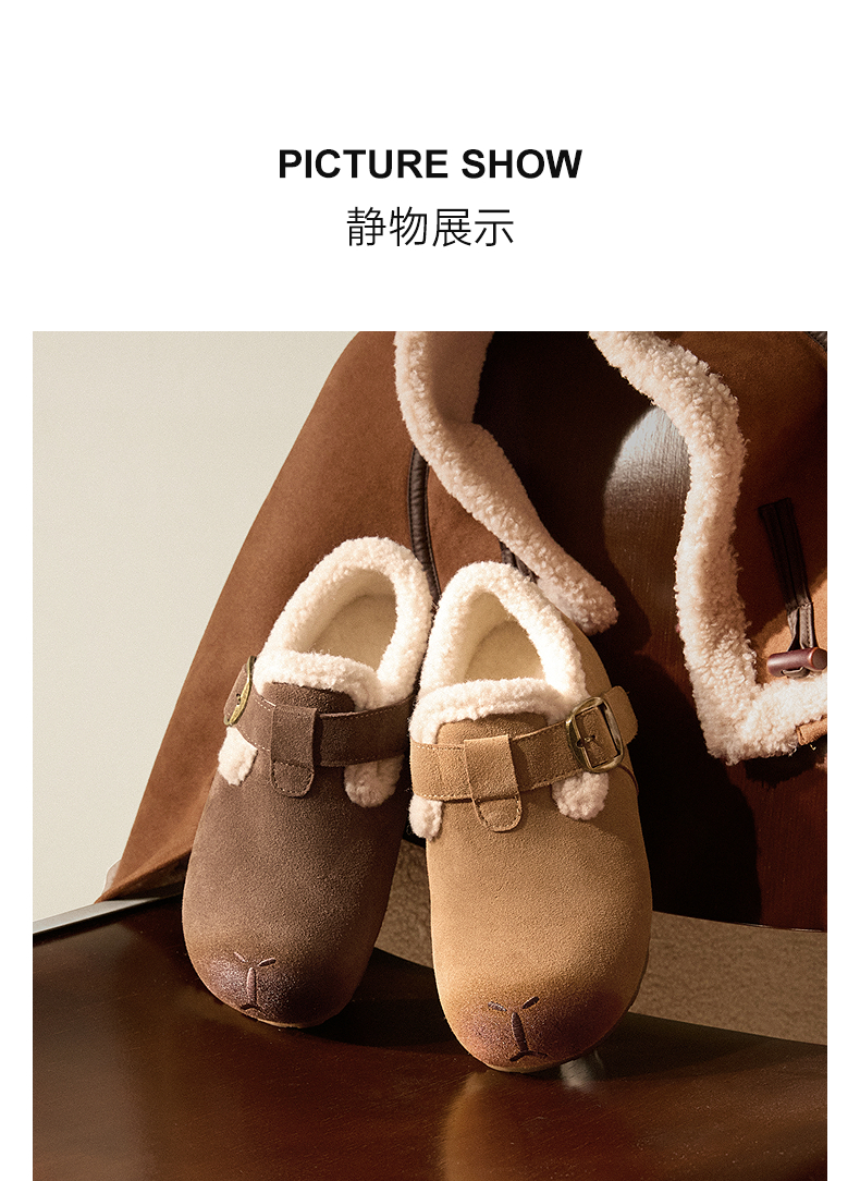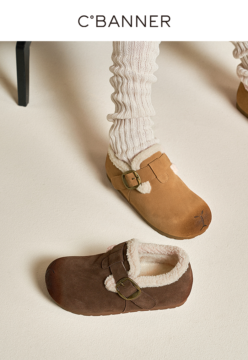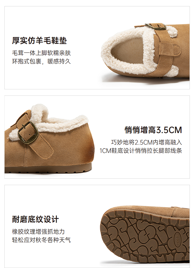 千百度全包勃肯鞋时尚卡皮巴拉雪地靴女冬季新款加绒保暖棉鞋A25763068