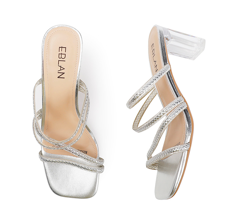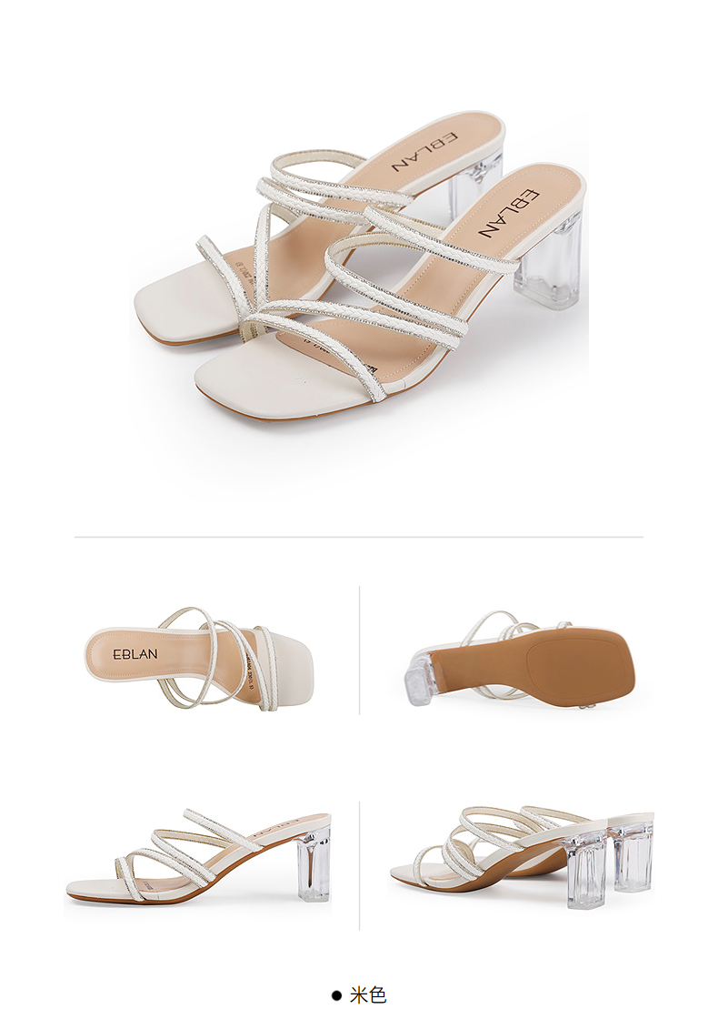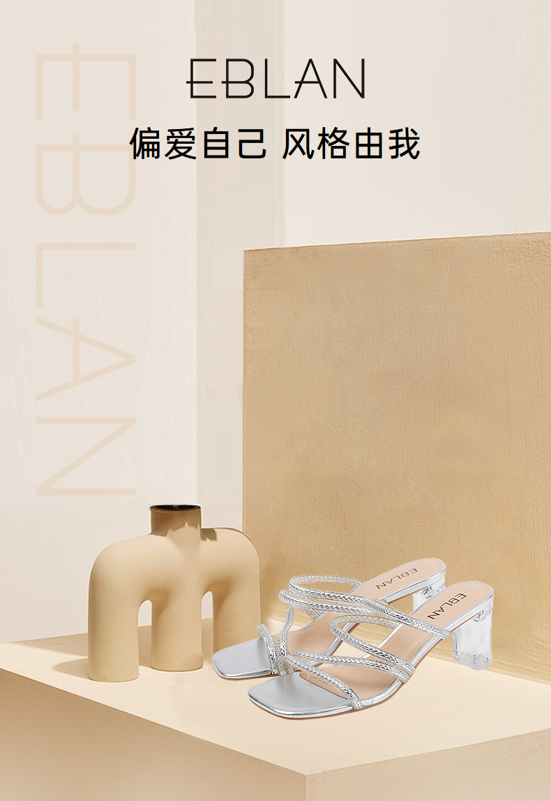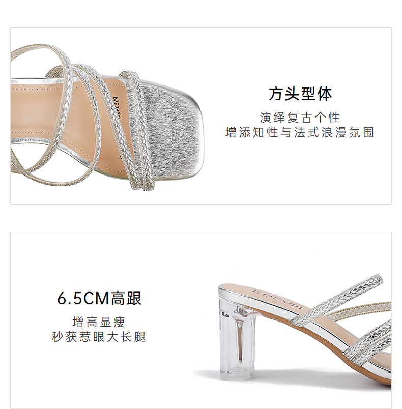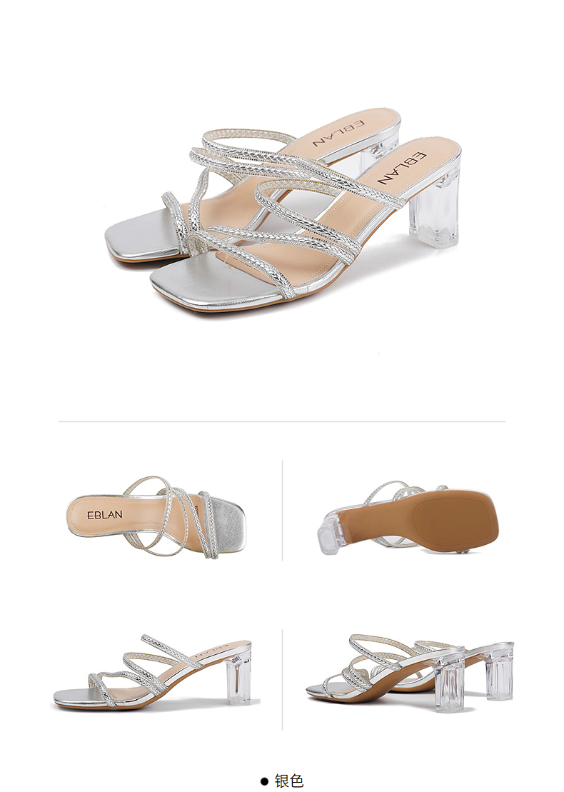 伊伴夏季趣味编织条带鞋面复古设计知性方头凉鞋B25382361
