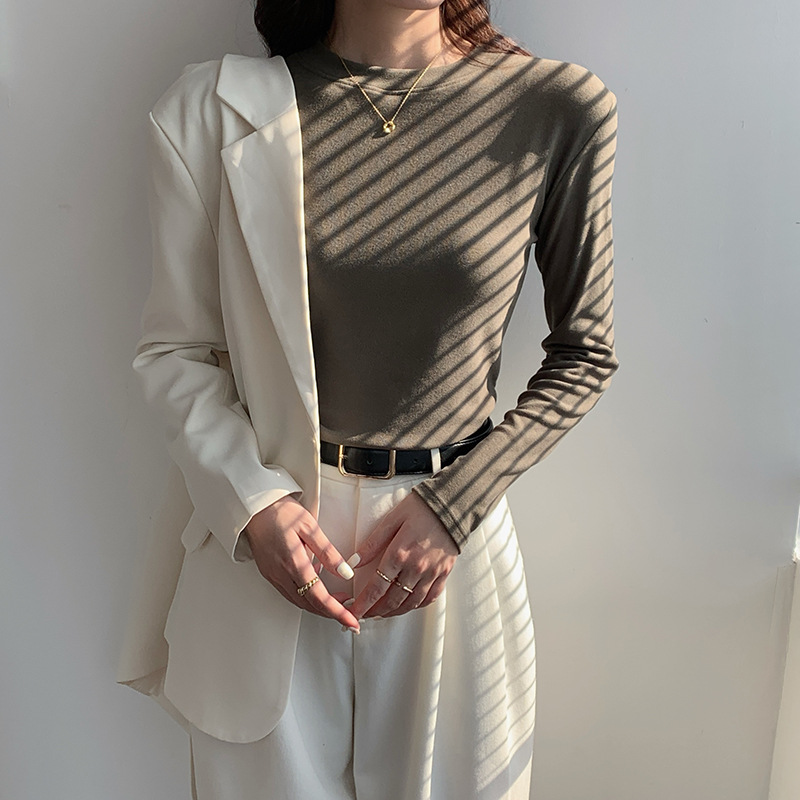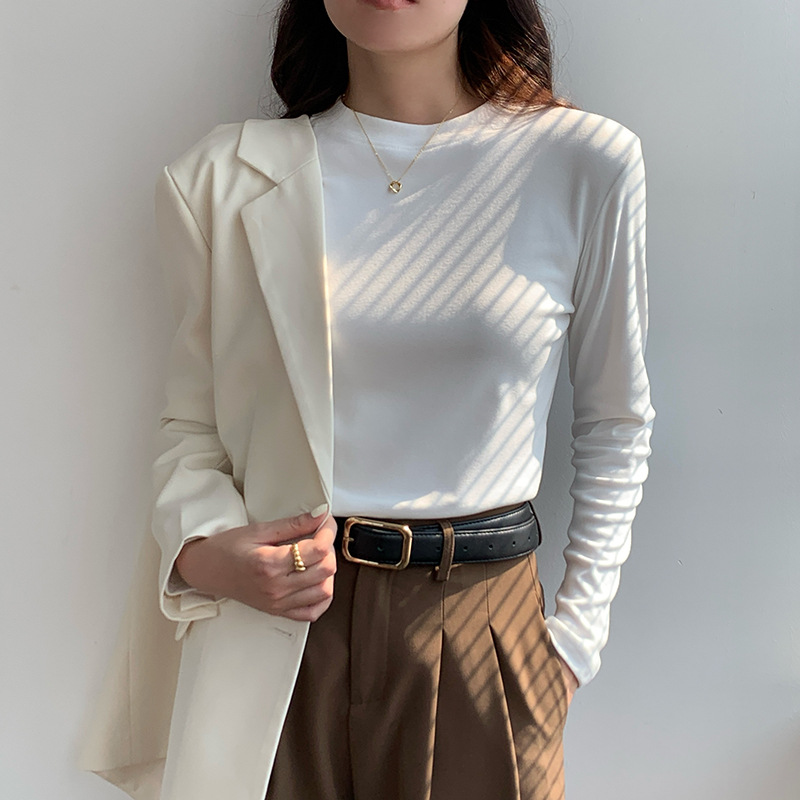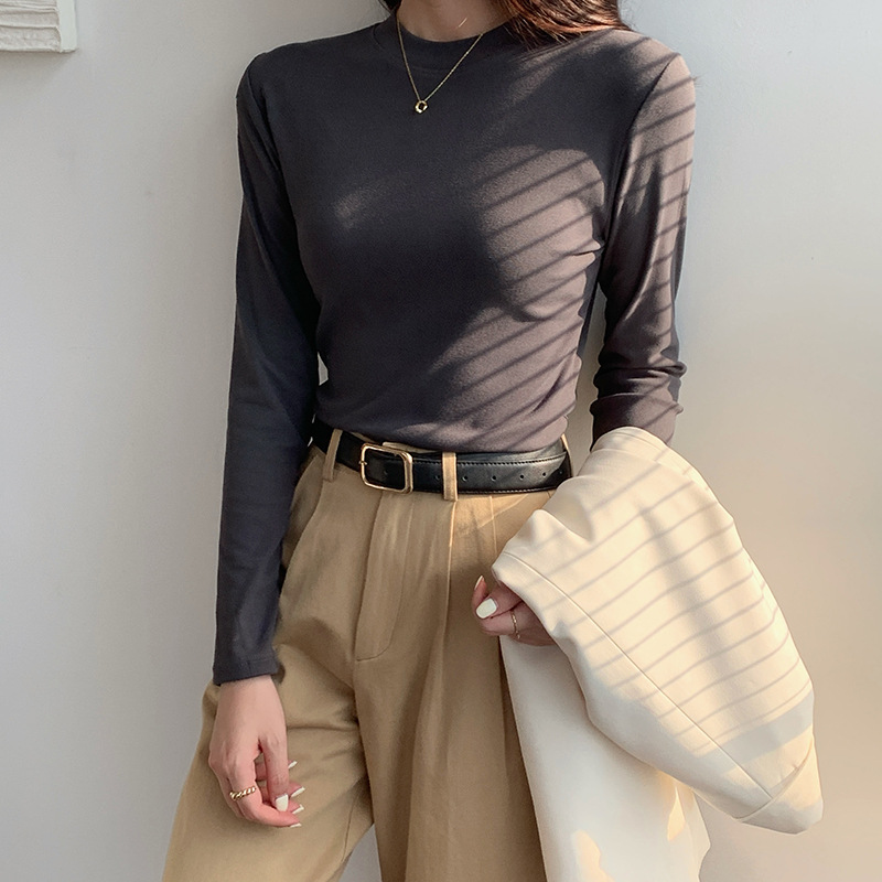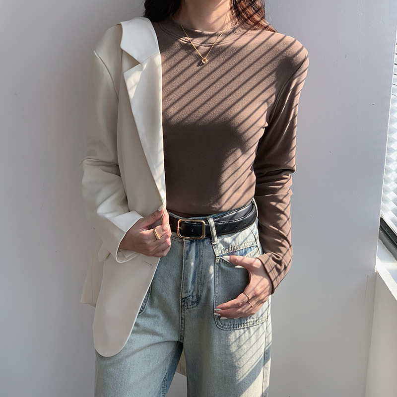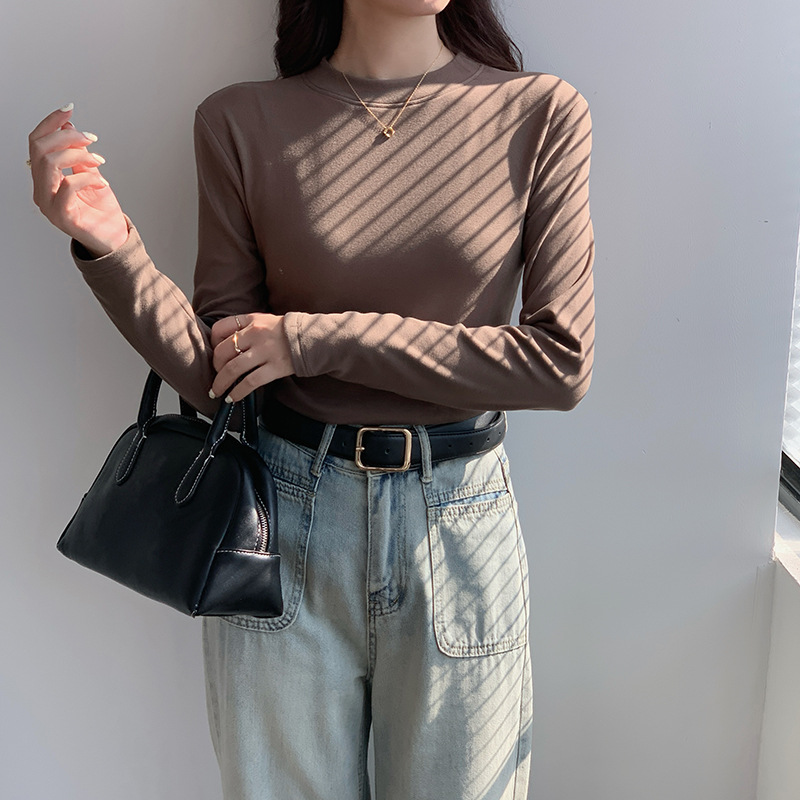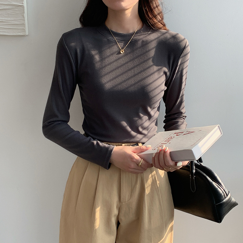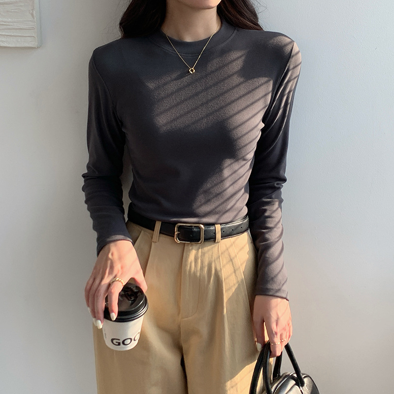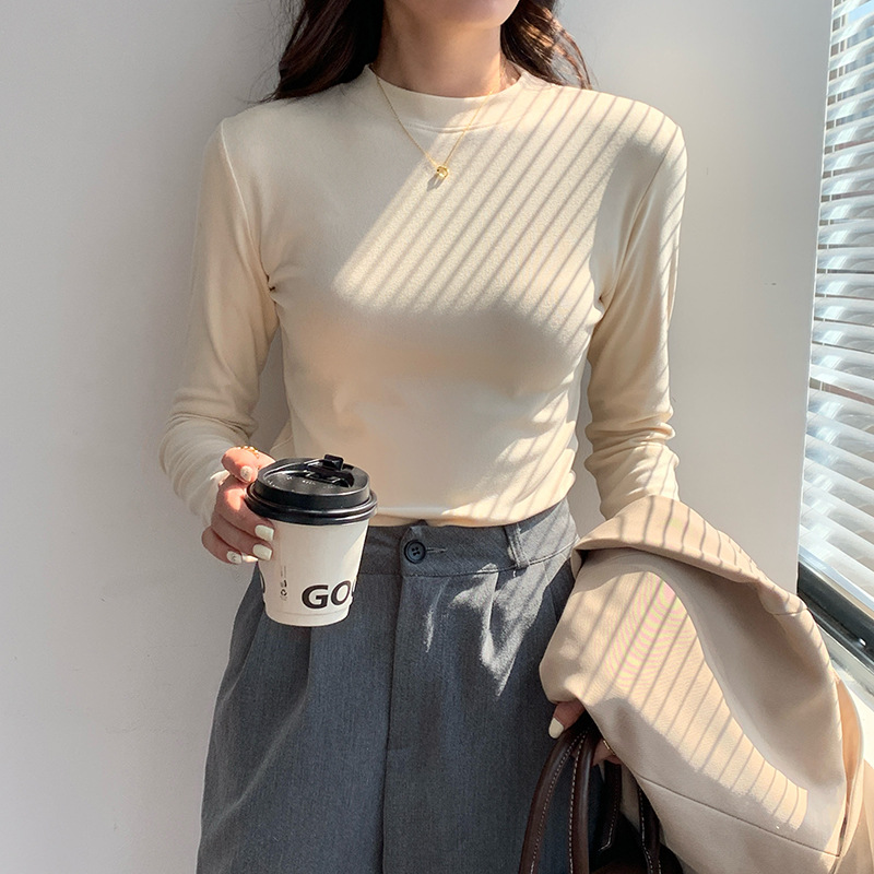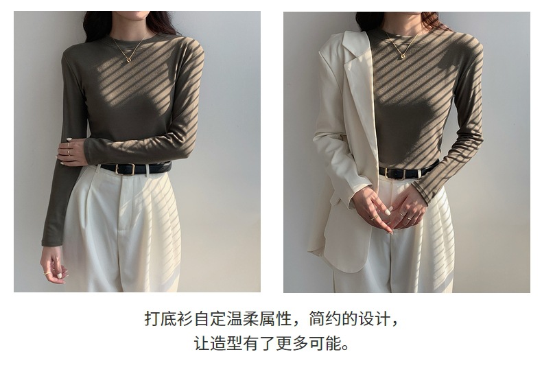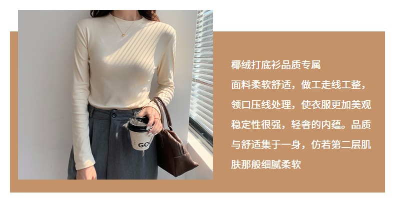 79元抢2件 秋冬新款亲肤椰绒打底衫女时尚百搭小立领长袖打底上衣可外穿