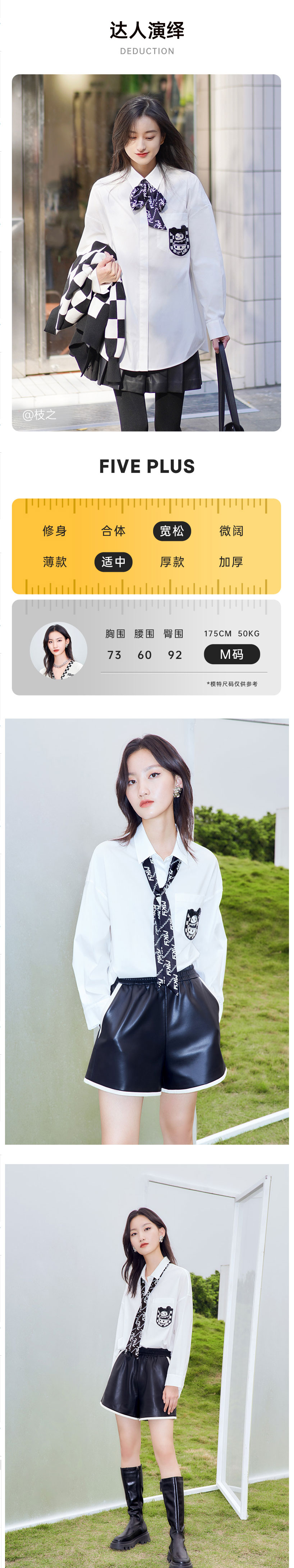 FIVE PLUS2022新款女春装泡泡玛特联名白衬衫女宽松学院领带衬衣2WN1010170