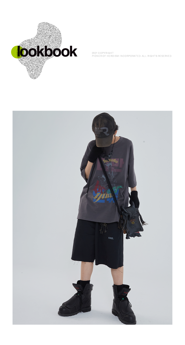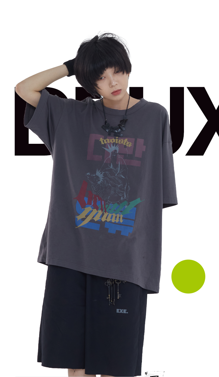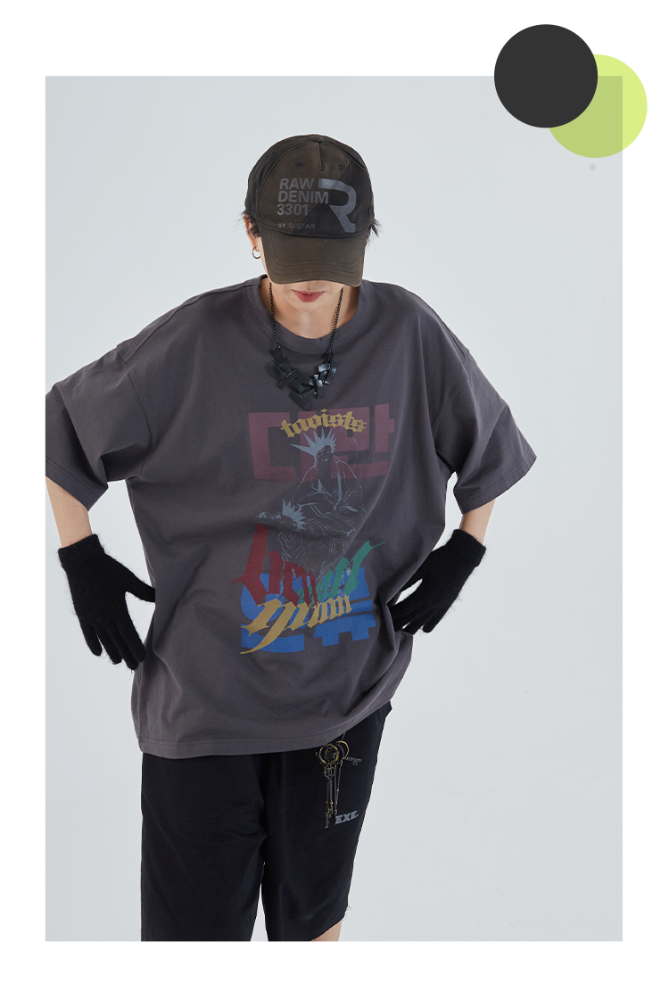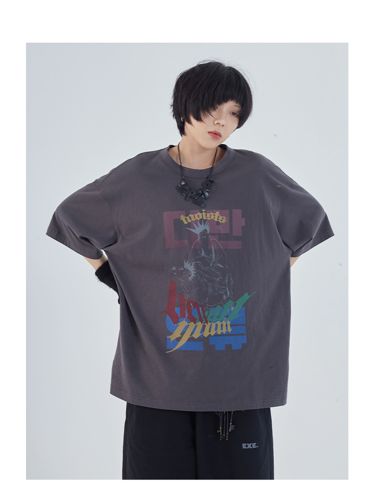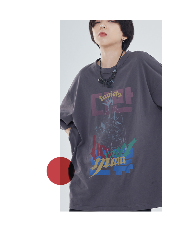 POH「道」街头休闲印花国潮落肩短袖男夏季潮牌设计感规格潮流T恤